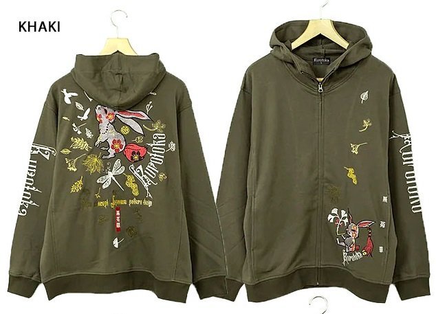 何でもあり、何でもやる新ブランド「LIN」から「黒菟華 落葉変形パーカー(AL-759018)」のご紹介です。 黒い兎がモチーフの「黒菟華(kurotoka)」から、ドルマンスリーブの変形パーカーが登場しました! 背面に描かれた総刺繍の菟。 ボディーには裏毛タイプのスウェットを採用。 | ||||||||||||||||||||