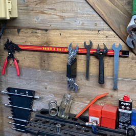 スパナ、レンチ、ドライバー、ペンチといった金属製の工具をマグネットのバーに貼り付けておくことができます。強力な磁気を帯びており、しっかりと工具をホールドすることが可能。乱雑になりがちな工具類を分かりやすく識別できるので、必要なときに工具を探す手間が省かれます。