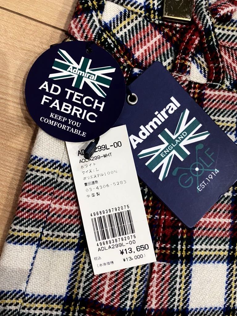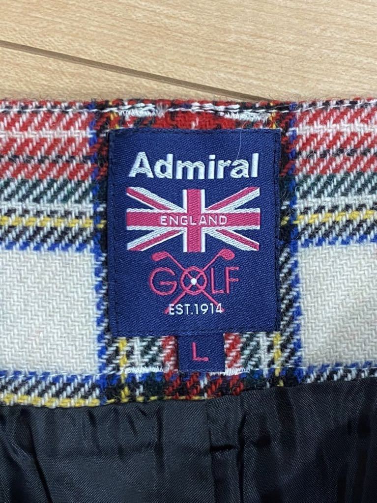 新品タグ付き Admiral GOLF アドミラル ゴルフ キュロットパンツ ウール混 チェック ホワイト Lサイズ レディース ○ 新規×(F5)
