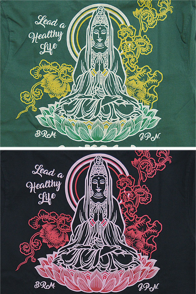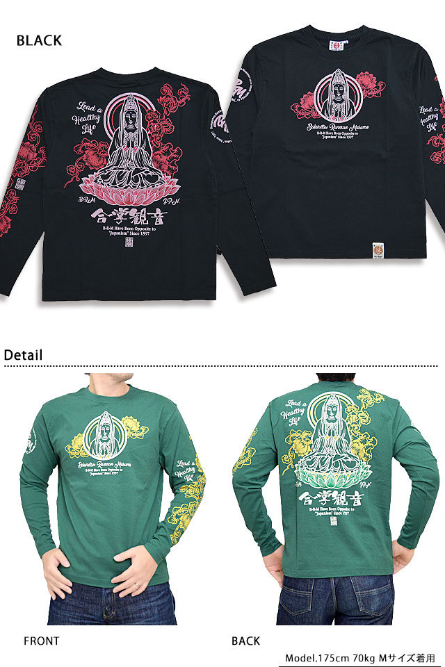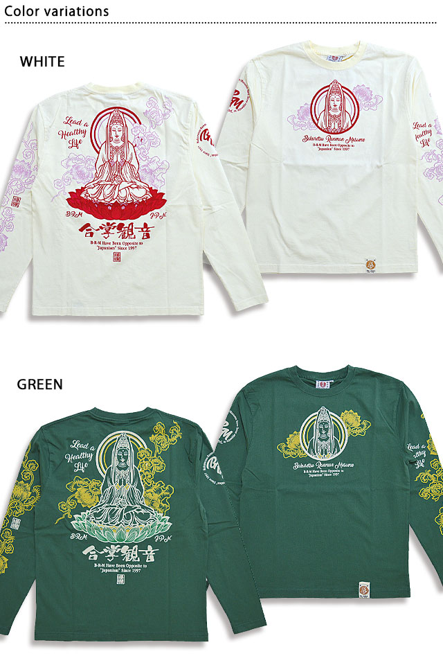 爆烈爛漫娘さんから「合掌観音ロングTシャツ(RMLT-322)」のご紹介です。 大人気の観音シリーズから最新作が登場! フロントバック共に、中央に合掌観音をプリント。 生地には、爆烈爛漫娘お馴染のよれにくくタフなボディーを採用しています。 | ||||||||||||||||||||||||||||||