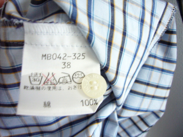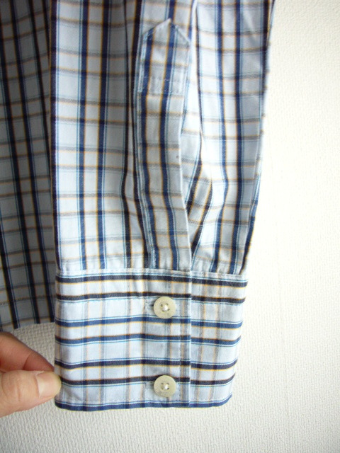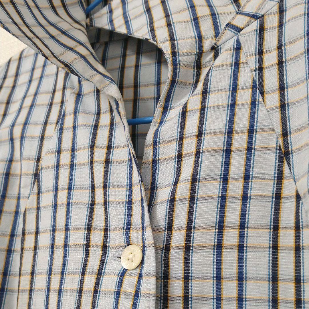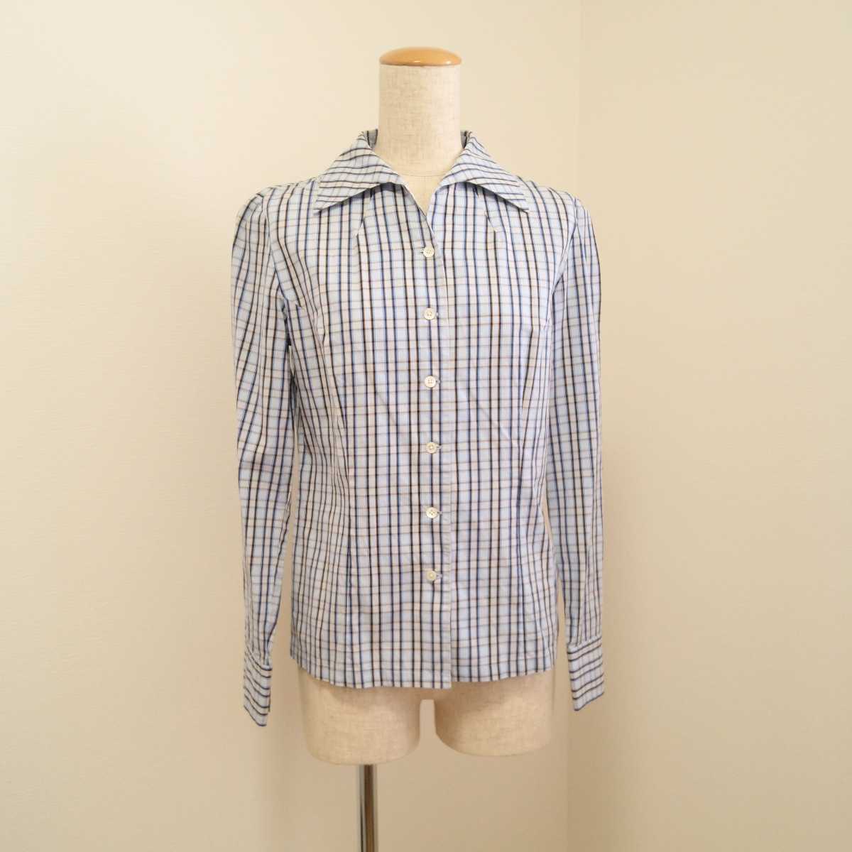 スコッチハウス The Scotch Houseの水色ベースに紺、山吹色などの細い線によるチェック柄のブラウス。