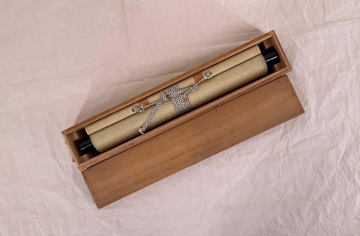 古い掛け軸は軸先を固定している接着剤が弱り、輸送途中の衝撃で軸先が外れてしまう場合がございます。