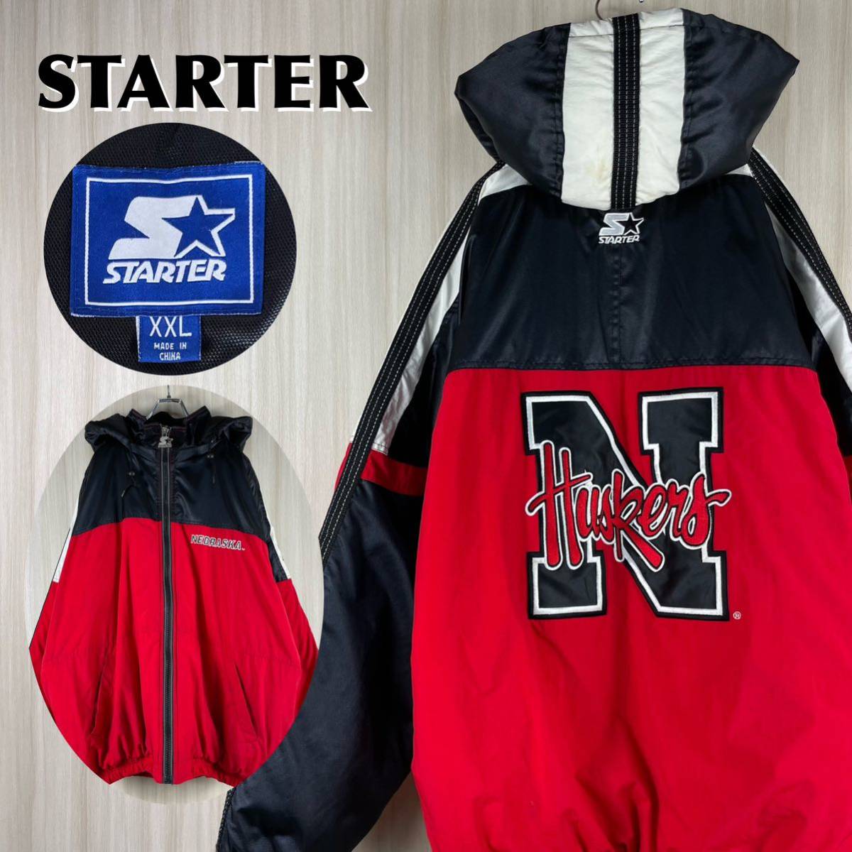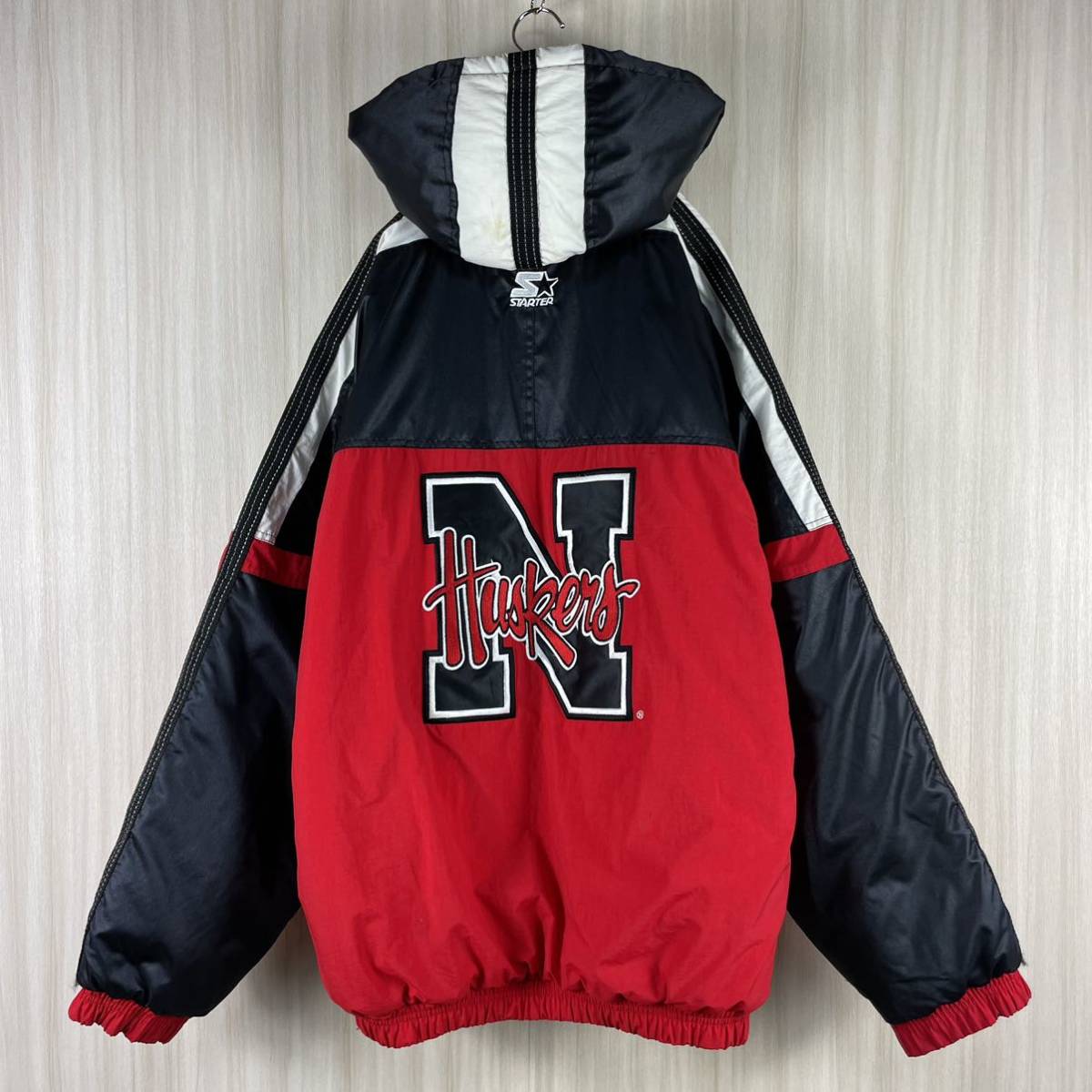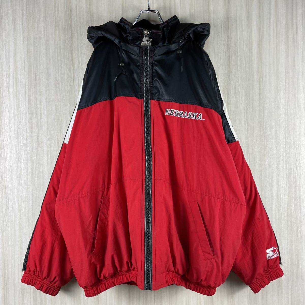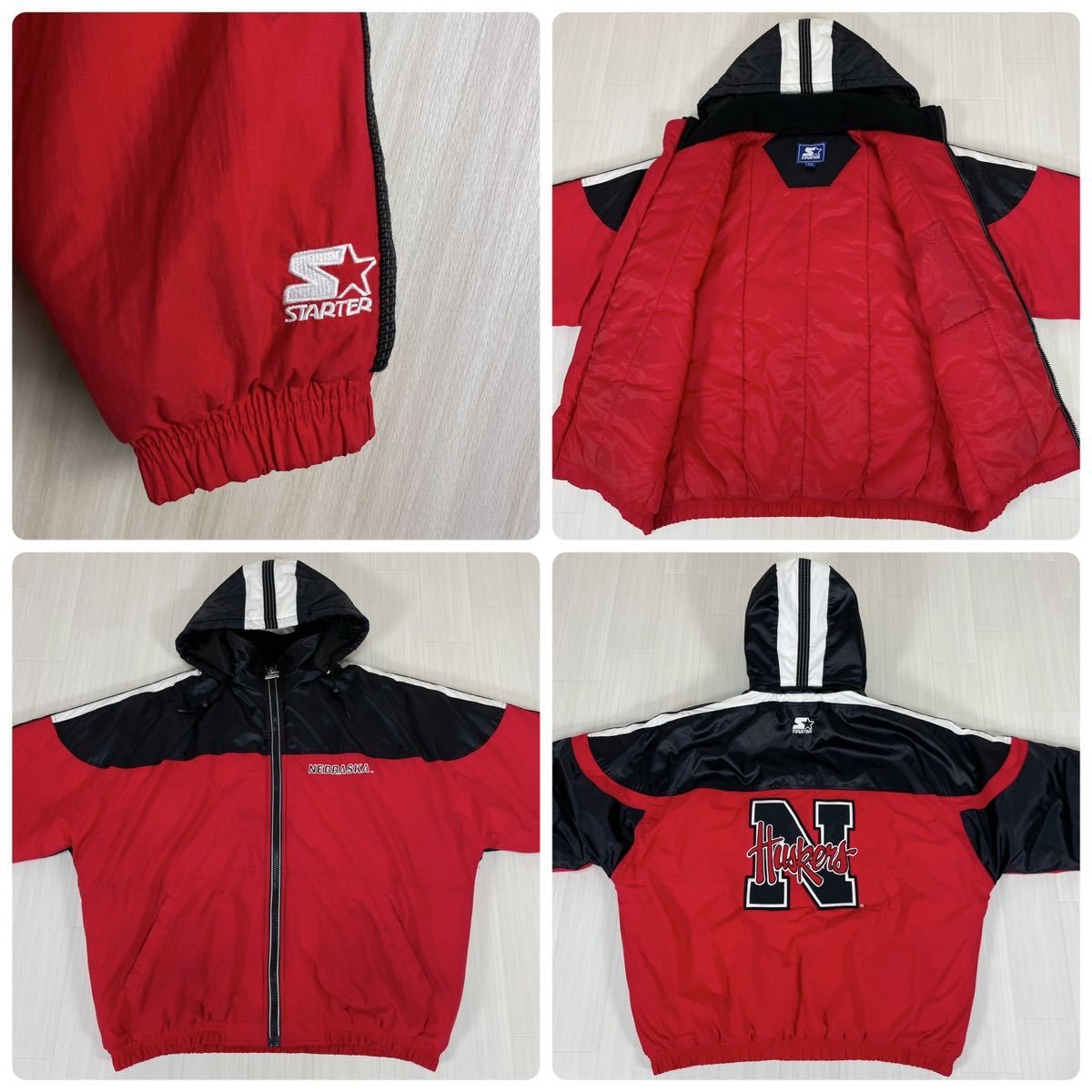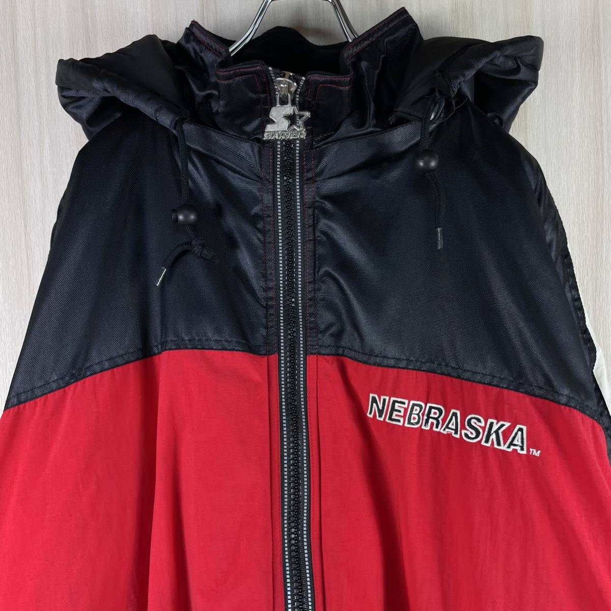 NCAA【ネブラスカ・コーンハスカーズ】刺繍 ワッペン バックロゴ スリーブロゴ 脱着式フード 中綿入 ジップアップ ラグランスリーブ ナイロンジャケット ジャンパー 希少アイテム