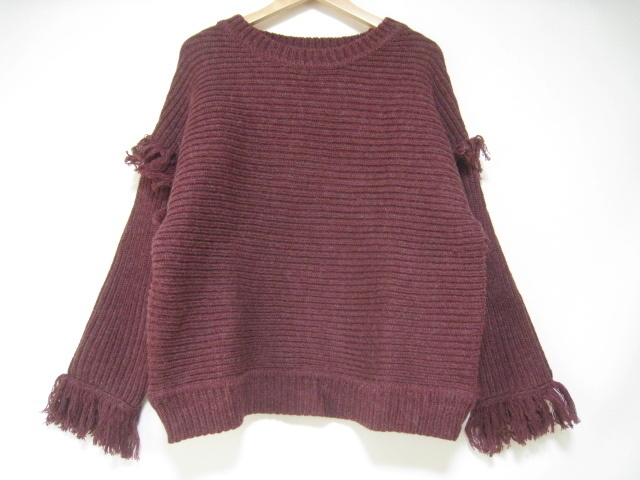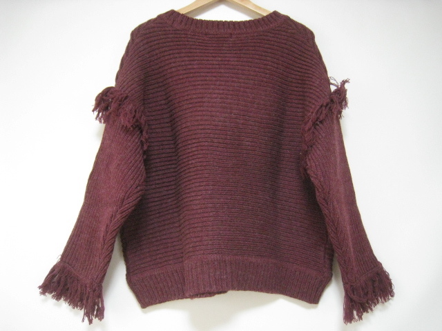 RCWB RODEO CROWNS ロデオクラウンズ トップス ニット セーター 丸首 フリンジ 長袖 毛混 ボルドー フリーサイズ
