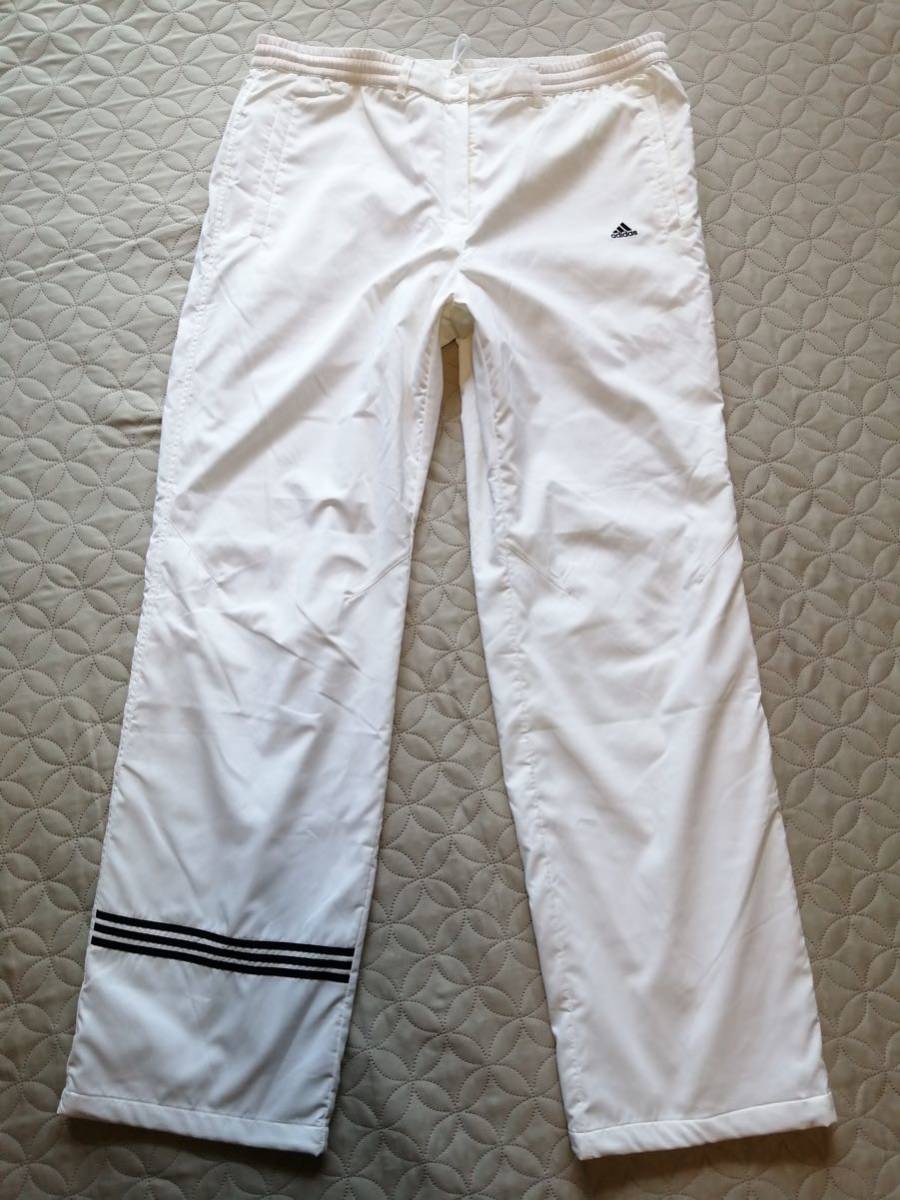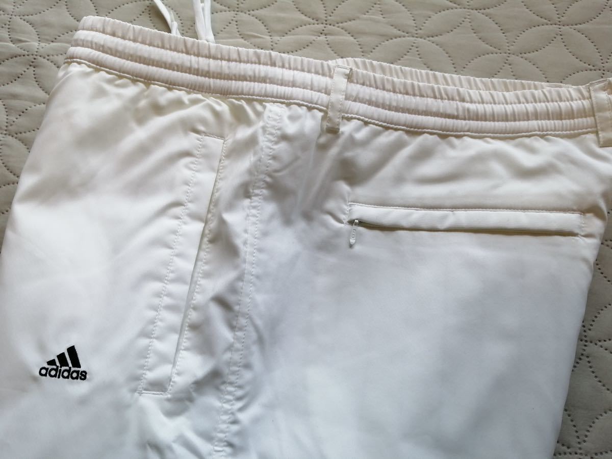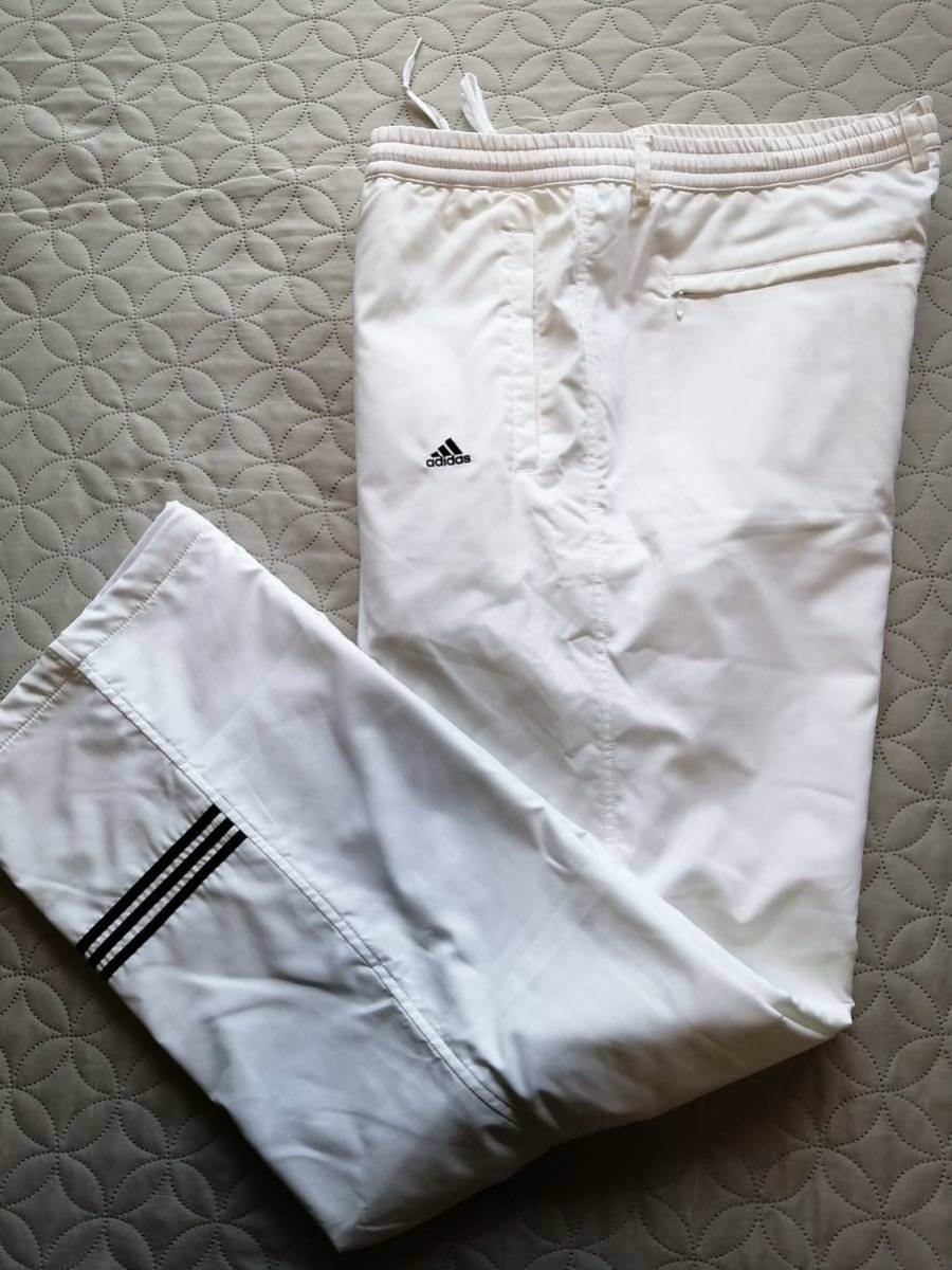 ◇adidasの裏起毛ウィンドパンツです。サイズはタグにOT(ウエスト70-76)とありますが、平置き実寸はウエスト44、股下78です。XLくらいだと思います。