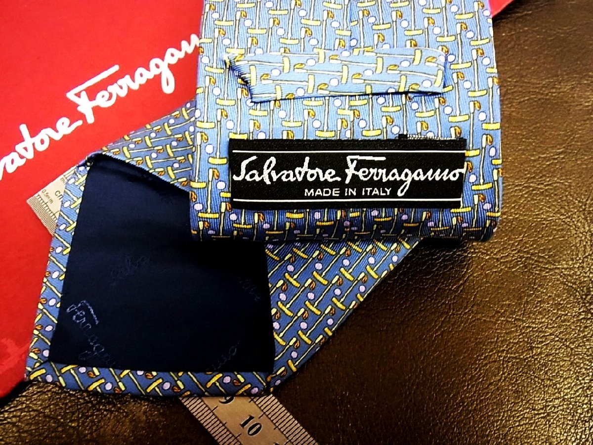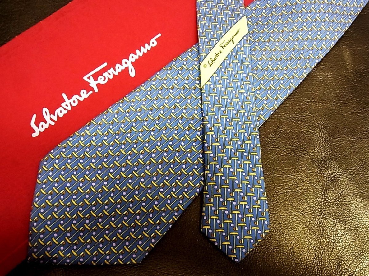 ♪今週の特売980円~♪1292W♪状態並品【Ferragamo】フェラガモ【ゴルフ 柄】ネクタイ♪