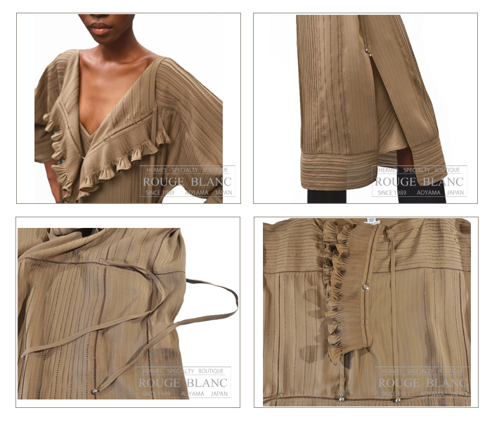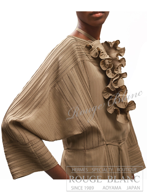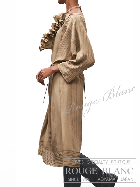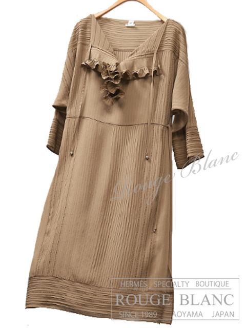 新品 エルメス  国内定価865,700円 ラッフルワンピース インナー付 ヴェール・ゴビ #38 タグ付 HERMES ブラウン 茶色 カーキ ドレス