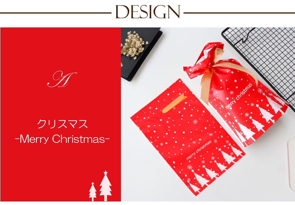 | 柄 | A.クリスマス / B.ハート / C.ドットグレー / D.さくら / E.ストライプグリーン ※[D.さくら]は半透明袋 |