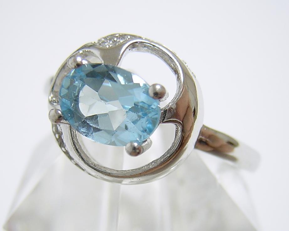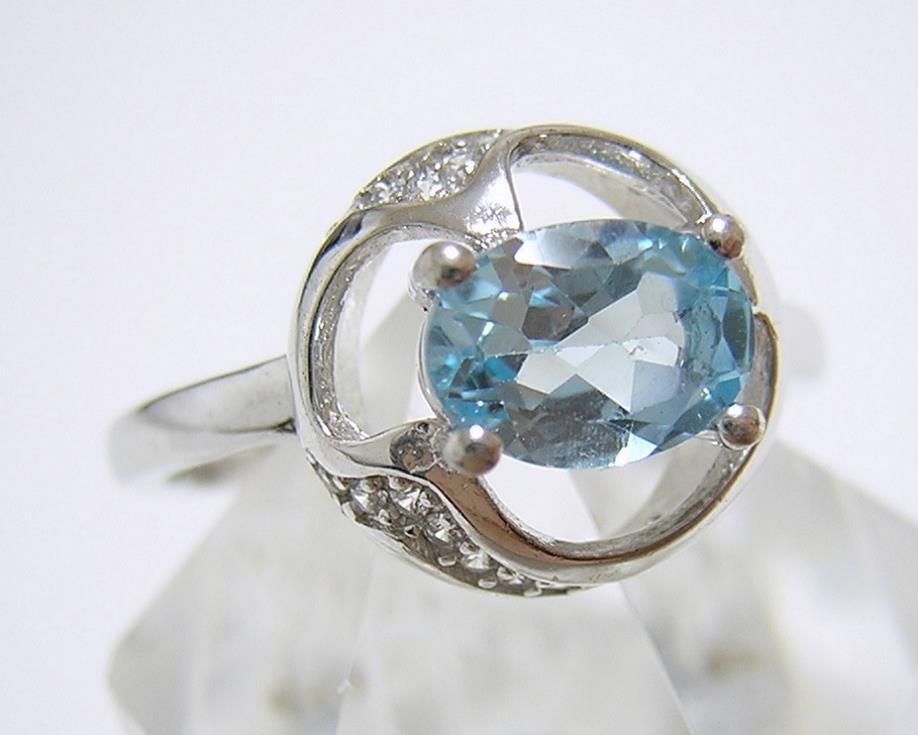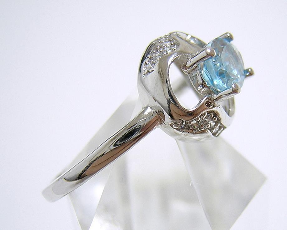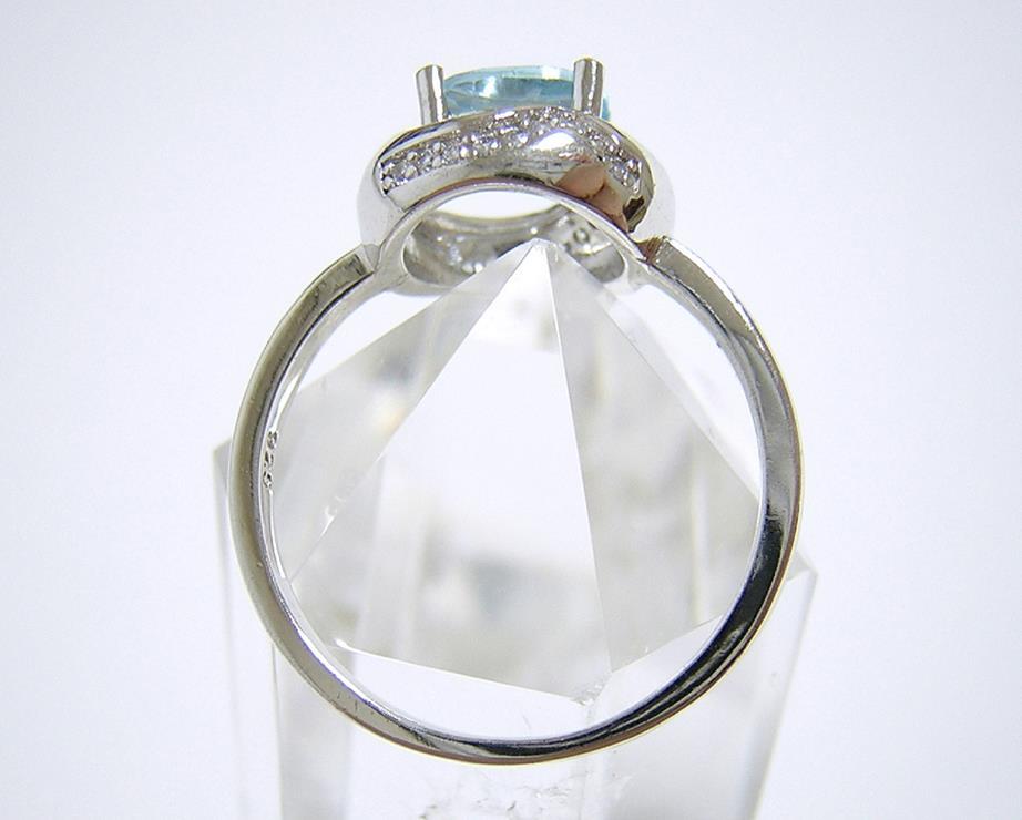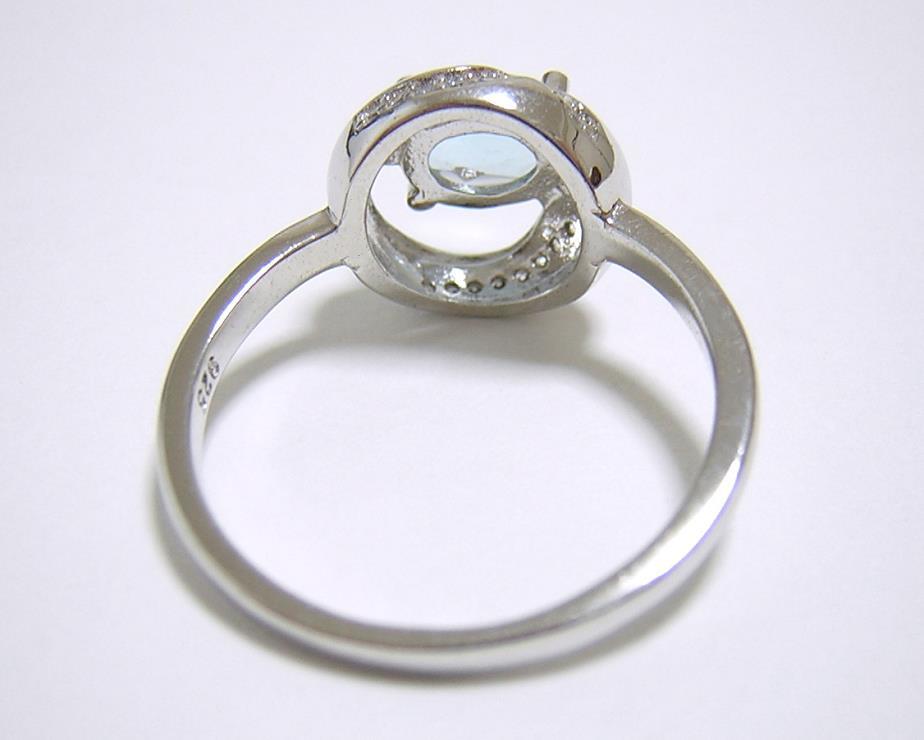 天然ブルートパーズとキュービックジルコニアを使用したデザインリングです。 ブルートパーズの大きさは約7×5mmです。 【中石】天然ブルートパーズ 【産地】アフリカ産 【処理】照射 【カット】オーバルファセットカット 【脇石】キュービックジルコニア 【重さ】2.7g 【サイズ】15.75号 (お直しは承れません) デザイン部:縦10mm×横11mm 【素材】シルバー925 (14金ホワイトゴールド仕上げ) 【刻印】925 【状態】新品 ※地金部分に製作時からの微細な小傷やスレがあります。 |