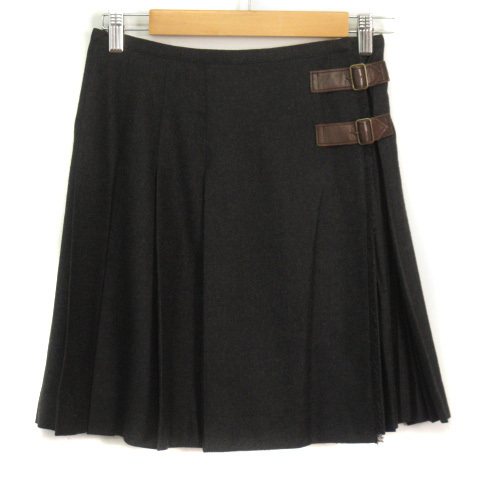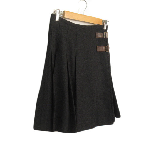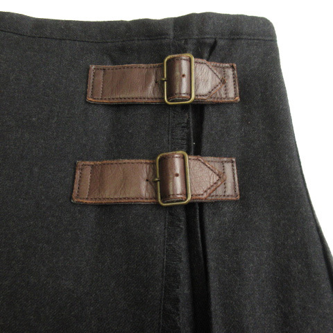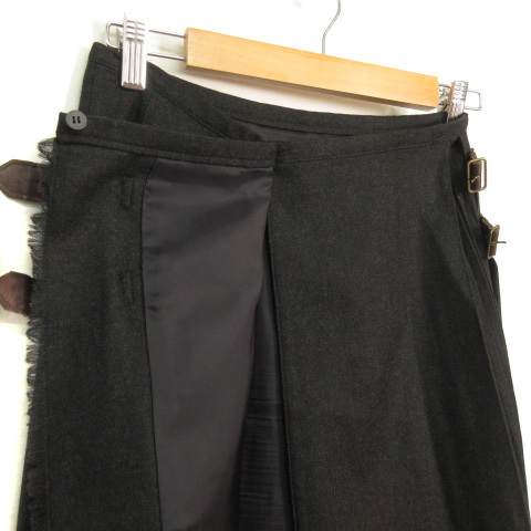 マカフィー MACPHEE トゥモローランド ラップスカート プリーツ フリンジ レザー ウール 34 チャコール レディース