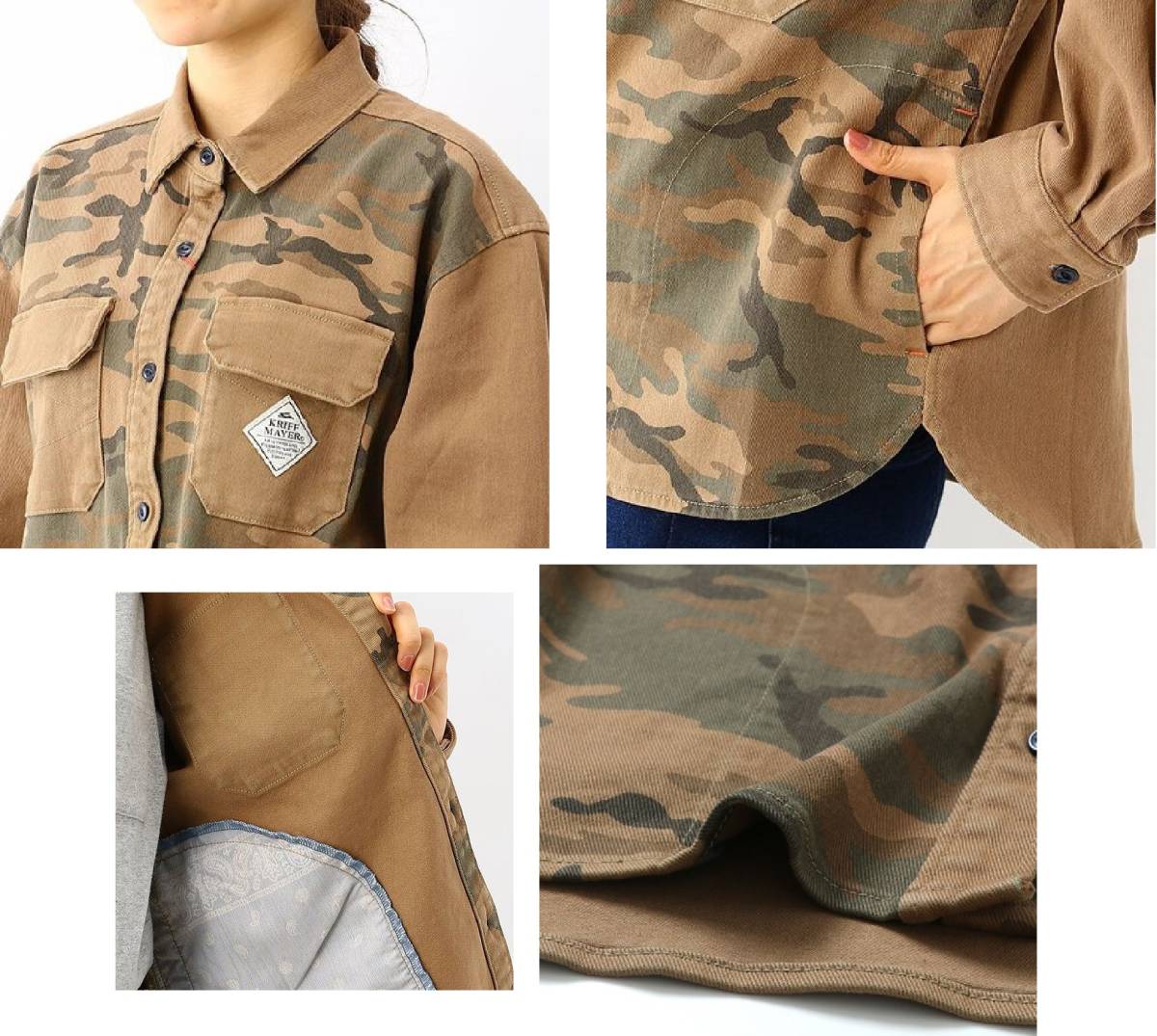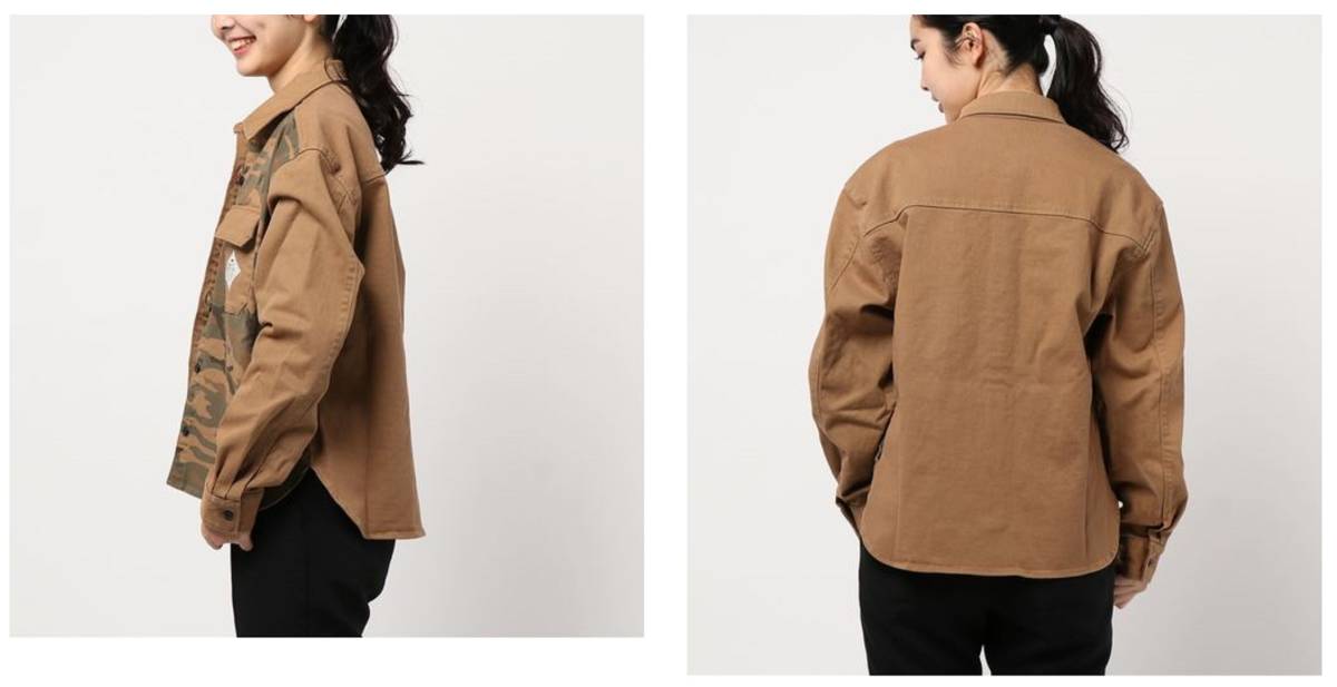 スクエアポケットが印象的なワークシャツをフロントをカモフラ柄で切り替えたシャツジャケットです。