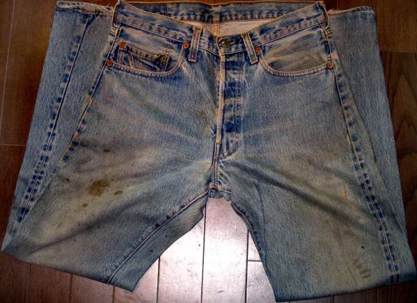 | 表記:W32 L34 実寸:W81cm L80cm 全長:103.5cm(サイドで計測) 裾幅:21cm 腿幅:28cm(股下10cm部分) ※手作業の為多少の誤差はご容赦下さい。 |