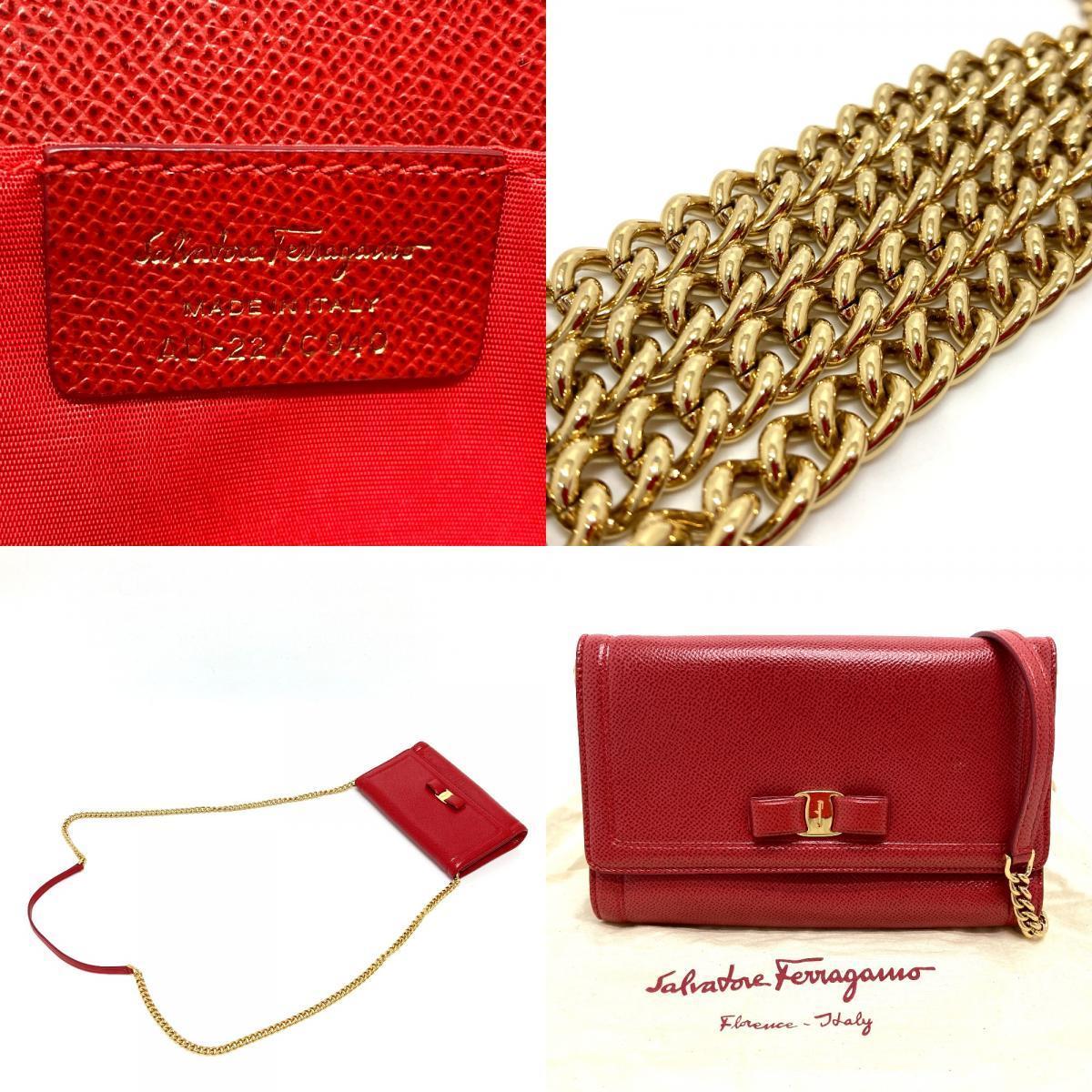 商品説明Salvatore Ferragamo定番人気のヴァラのチェーンショルダーバッグです。エレガントで女性らしい可憐な印象。鮮やかなレッドのカラーでパーティなどの華やかなシーンでも活躍できるアイテムです。