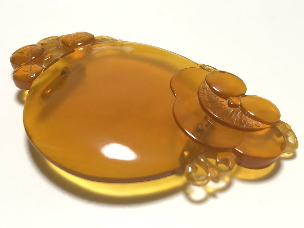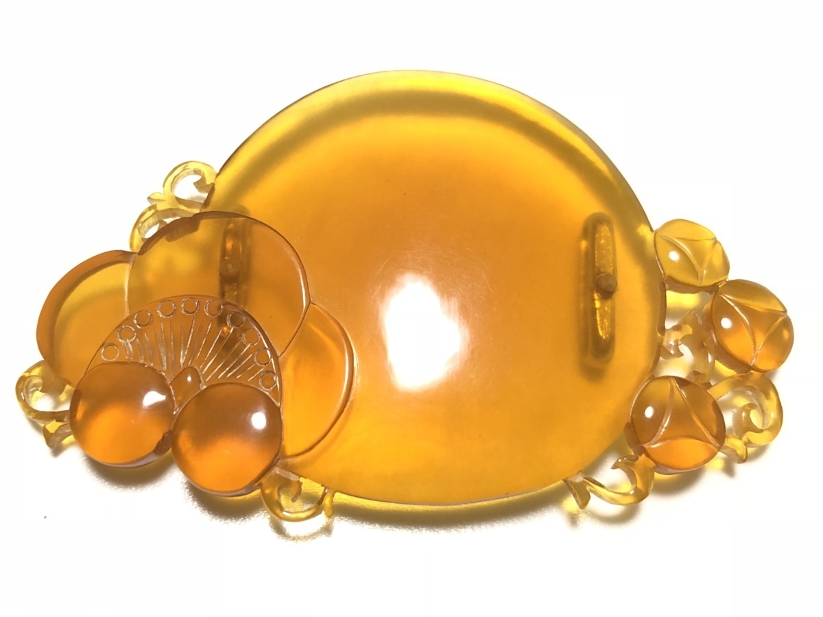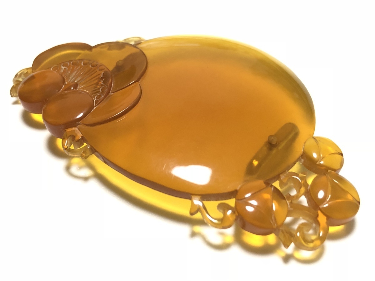 アンティークの白甲の本鼈甲を使用した、梅花日の出細工の帯留めです。鼈甲部分に欠けや虫食いは無く、状態良好です。 縦4.0㎝、横6.4㎝、重さ7.8g