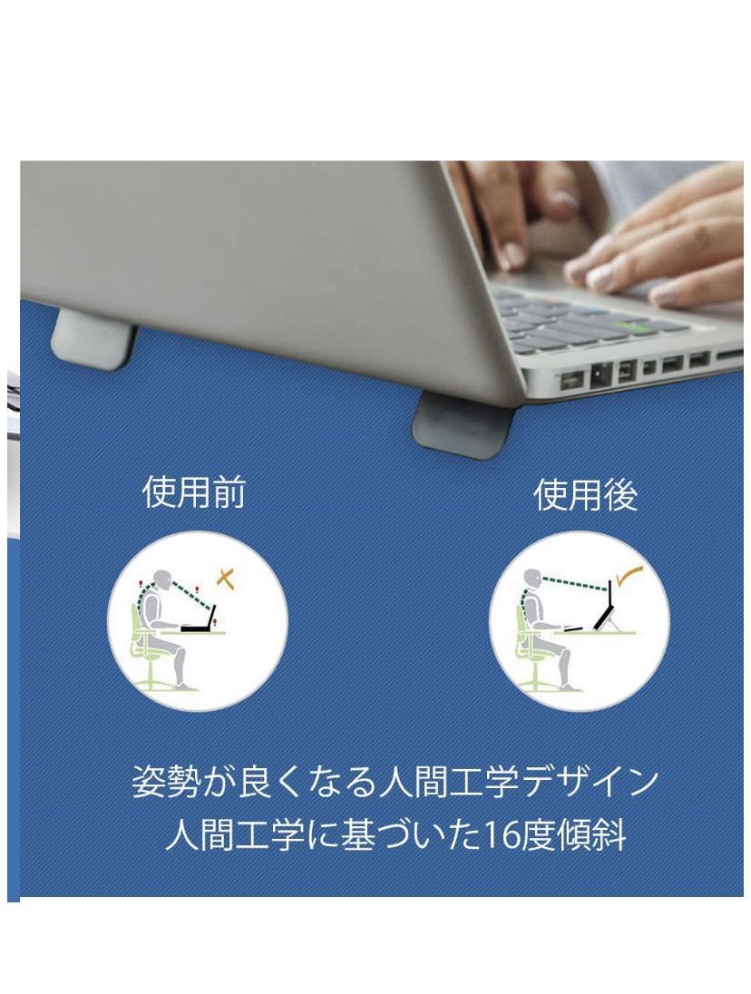 【人間工学デザイン】エルゴノミックアングル、快適なビューアングルを提供する、人間工学に基づいた16度傾斜。置くだけシンプルなノートパソコン スタンドでおしゃれでスッキリな印象に。キーボードが斜めに見るだけで、姿勢が良くなる人間工学デザイン。