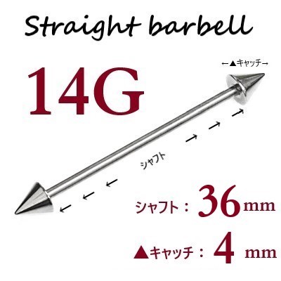 【 14G シャフト36㎜ キャッチ4㎜ 】 【1個】 ▲ コーンヘッド ストレートバーベル ピアス