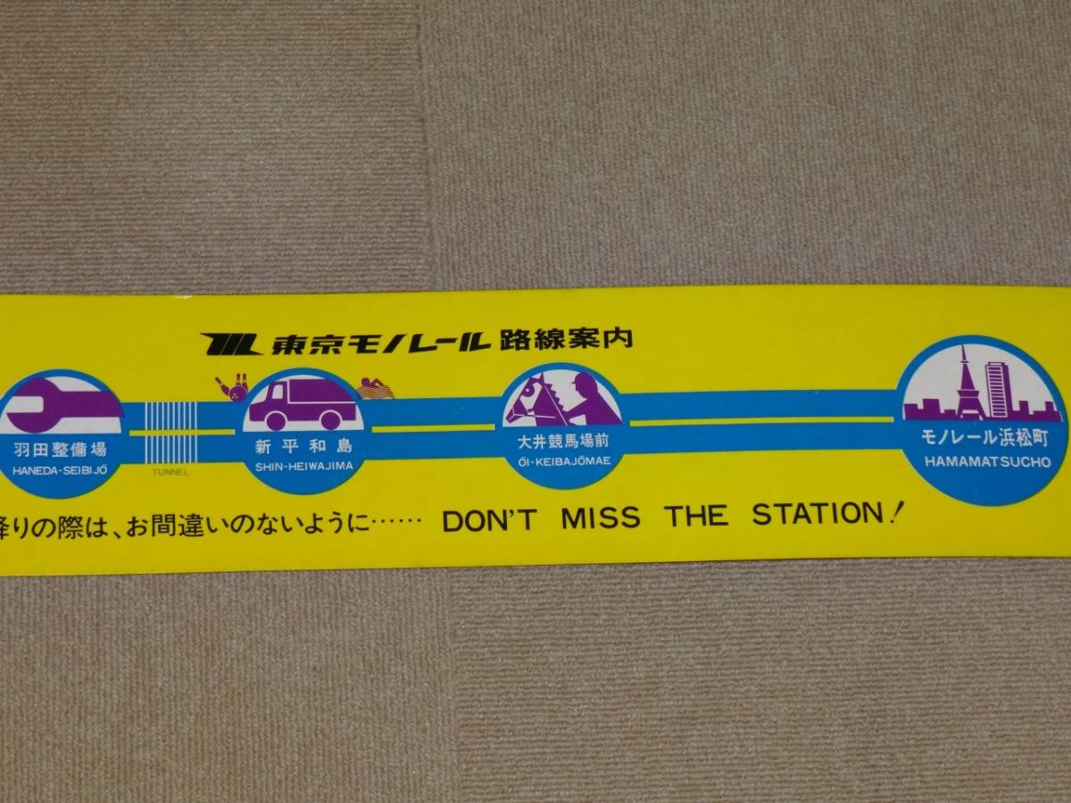 【東京モノレール】車内 路線案内 羽田-羽田整備場-新平和島-大井競馬場前-モノレール浜松町