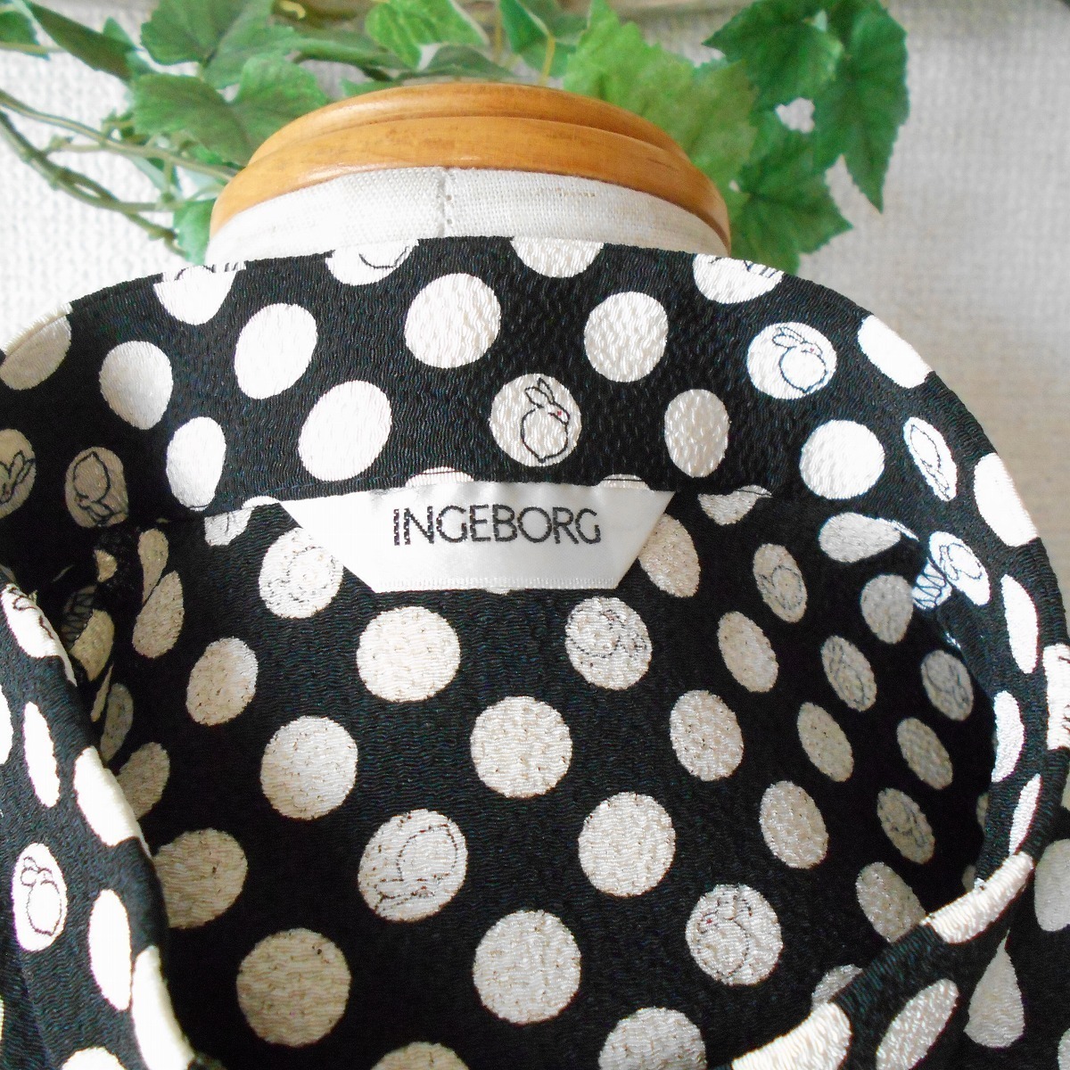 美品 インゲボルグ INGEBORG ちりめん 生地 ウサギ さん入り 水玉 柄 の お洒落 な 和風 上下 セット