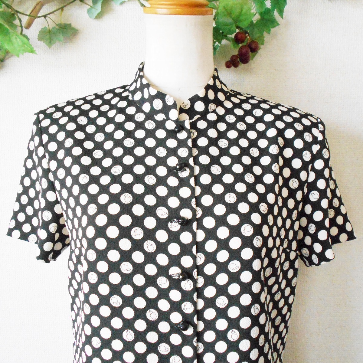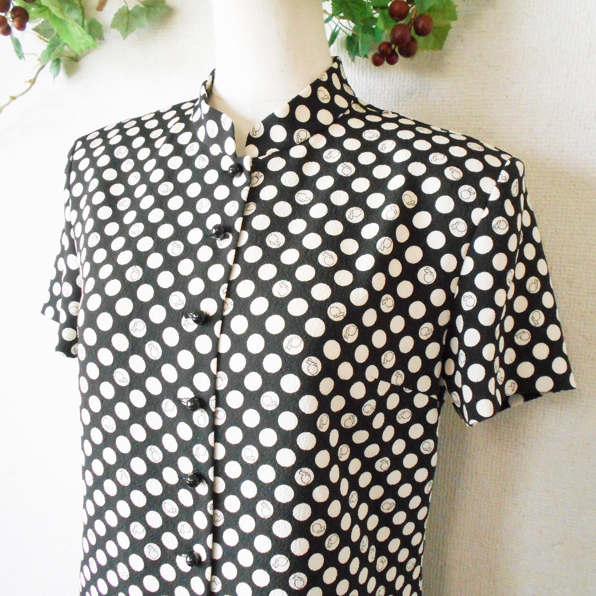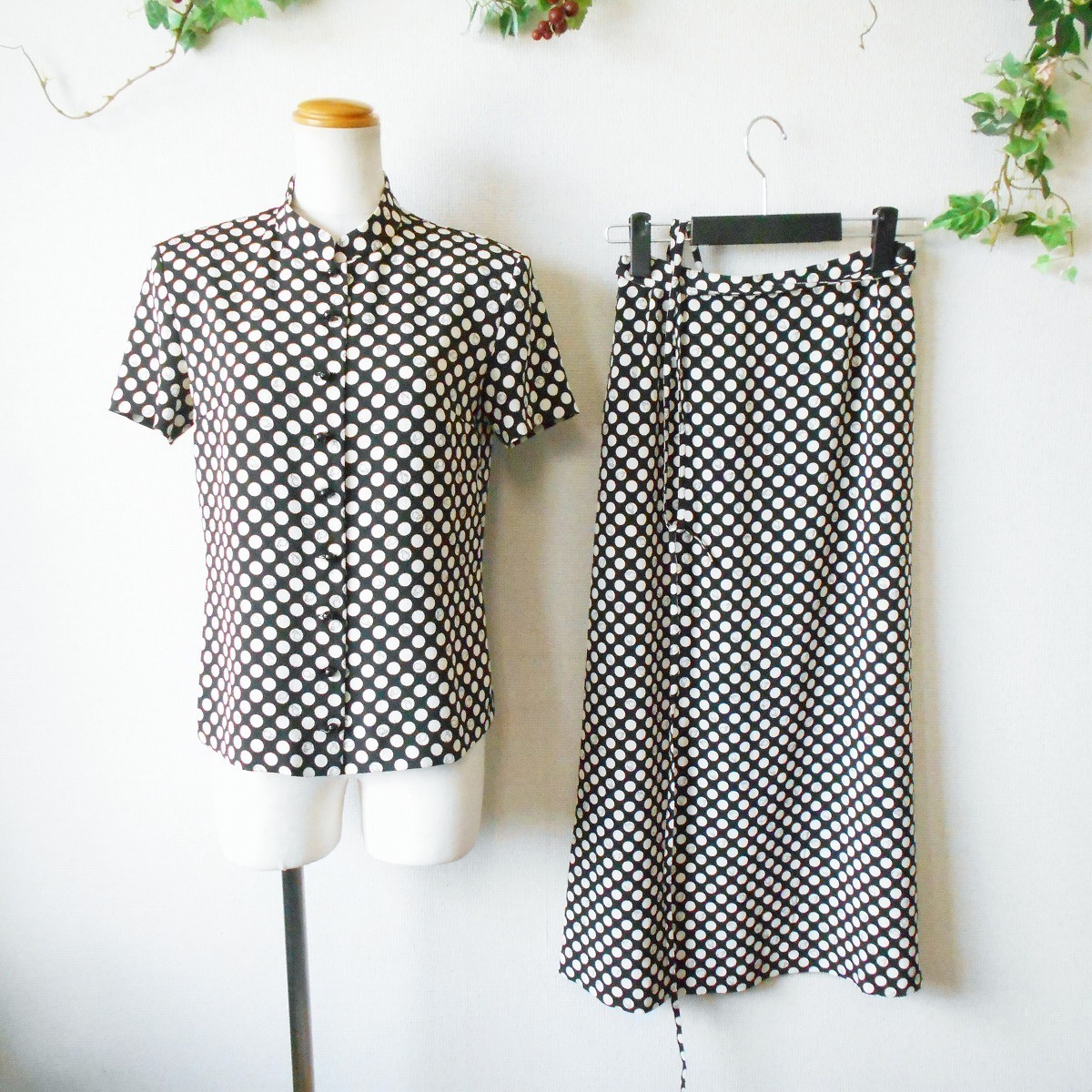 【ポイント】インゲボルグの上下セットになります。お色は黒色ベースで白の水玉柄が全体に入っていて、ところどころに可愛いウサギさんが入っています。ポリエステルのちりめん生地が使用されていて、和の雰囲気があり、スタンドカラーのお洒落なデザインのとっても素敵なセットです。