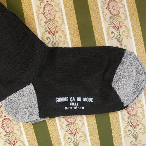 新品 コムサデモード COMME CA DE MODE キッズのハイソックス・靴下です。お色は黒・ブラックにグレーポイントです。入学式・発表会、色んな行事等にもどうぞ。