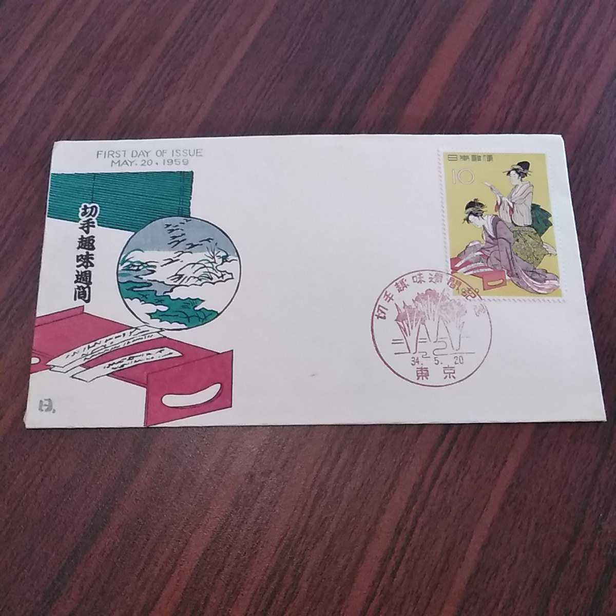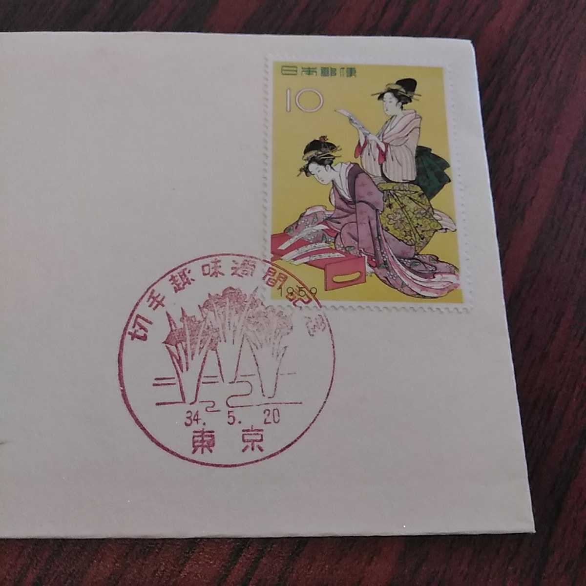(あ)切手趣味週間記念切手 細田栄之 浮世源氏八景 初日カバー1959年 昭和34年 First day Cover 郵便局 昭和【送料84円】