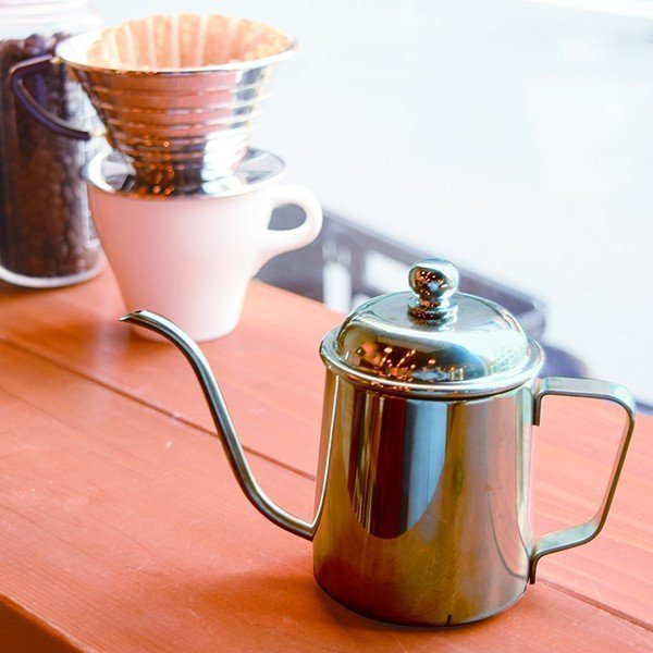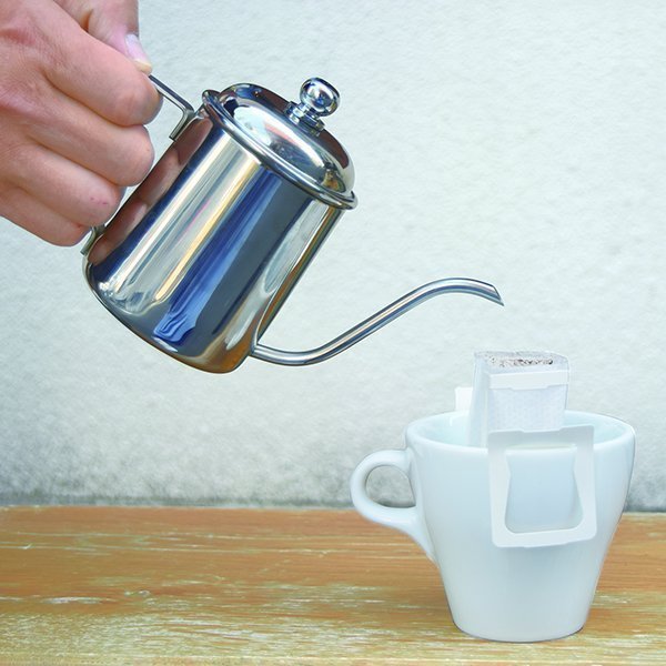 コーヒー2杯分のコンパクトなドリップポットは、ハンドリップやドリップパックのドリップに持ってこい。使い勝手のよいサイズ感で重宝します。