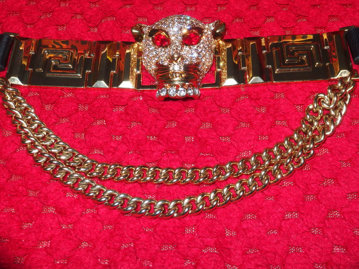 ヴェルサーチVERSACE for H&Mベルサーチ(コラボ商品)/チョーカー・首輪/レオパード豹ヒョウ/たぶん本革製/長さcm~36cm/定形外で発送