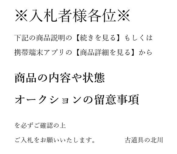 ※金額の誤入札の取り消し、キャンセルはお受けできません。よくご確認の上ご入札をお願いします。(本公司無法接受金額輸入錯誤的出価取消以及落札(得標)後的取消。 出価前請再次確認、謝謝。)