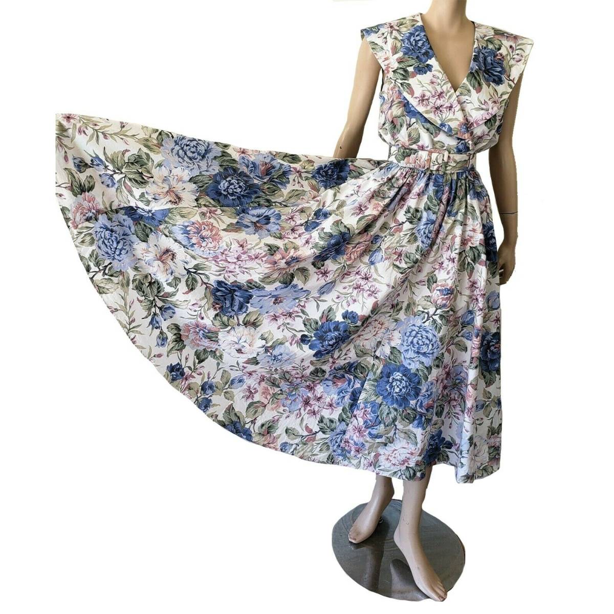 ●Carol Anderson 爽やかな美しい大輪の花々の描かれた、とてもエレガントなマキシドレス、ロングワンピースです。