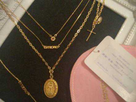 こちらはタグ有と無しの両方ありますが全て未使用保管品♪ northcornerと土岐田麗子のコラボ商品です♪ 素材は合金、18Kコーティング、日本製です♪ ロザリオネックレス、小さなルビーが入ったペンダント、アムールの文字のネックレスとブレスレットの全4点セットです(#^.^#) ピンクの保存袋もお付けいたしま♪♪ 定価は12600円☆ 小さなルビーが意外と存在感を主張してくれる可愛いセットです(^-^) 個人的にはセットがお勧めですが、その日の気分でバラにしてもよいと思います♪ 気に入ってくださった方、格安ですので神経質でない方、NCNRで御了承いただける方のみどうぞ宜しくお願いします♪ 他にも可愛い商品を沢山出品しておりますので是非ご覧下さい(^_-)-☆ まとめて取り引きはごめんなさいですが、同梱は大歓迎です♪ 必ず、自己紹介をご覧くださいませ♪