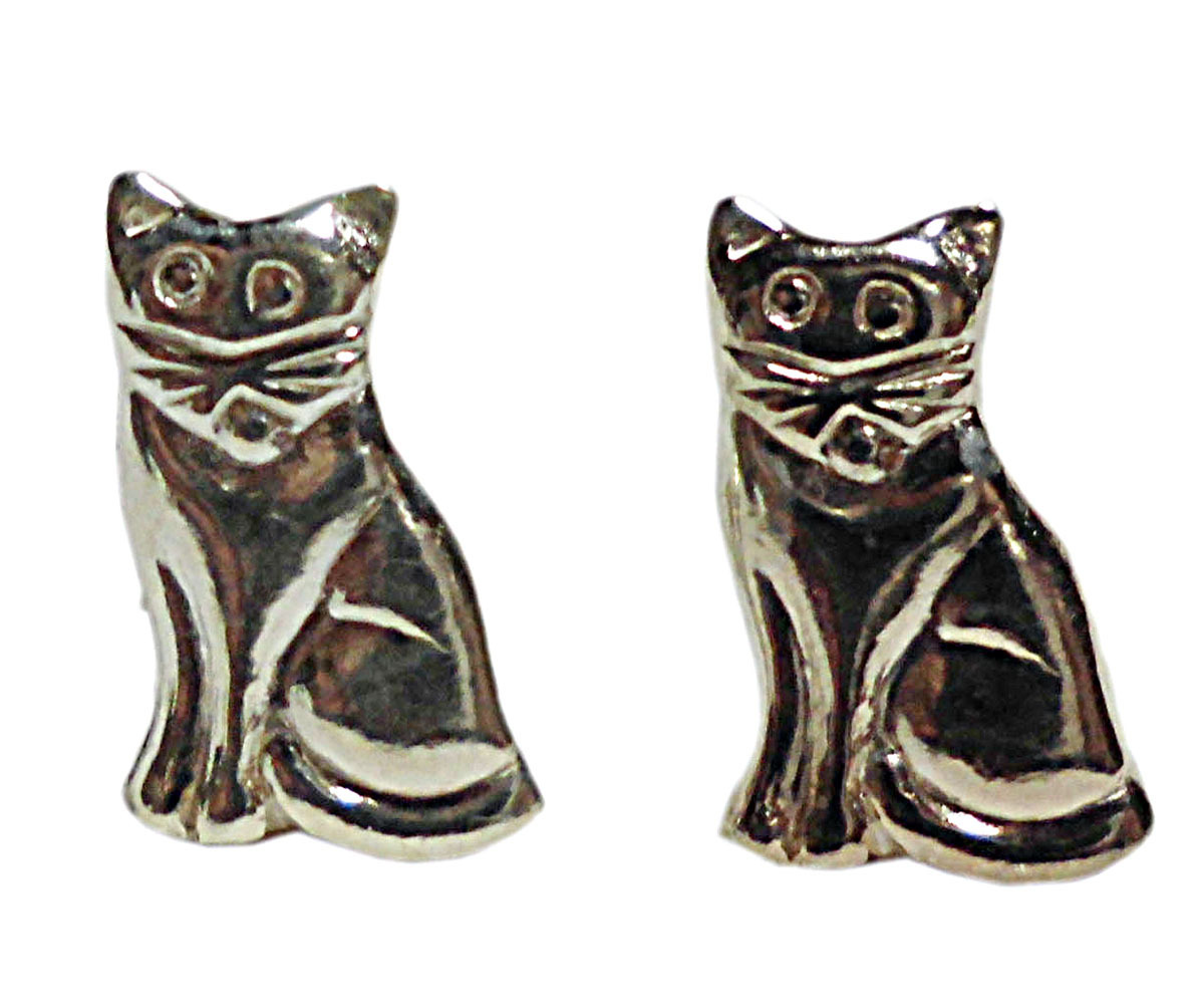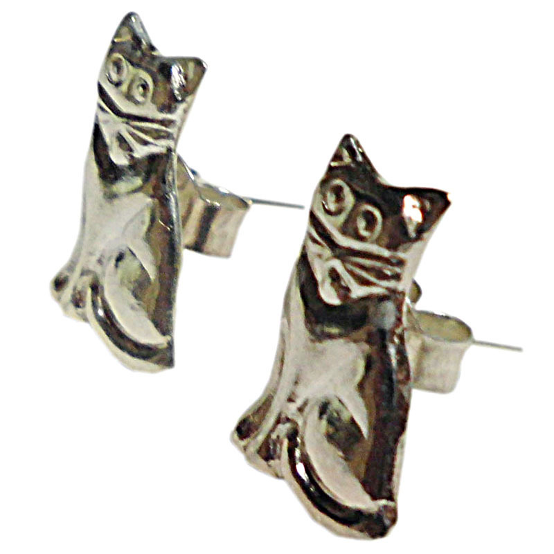 ■☆アジアン雑貨 タイ銀職人 シルバー・キャッチ付きピアス 猫 (KCP-4)
