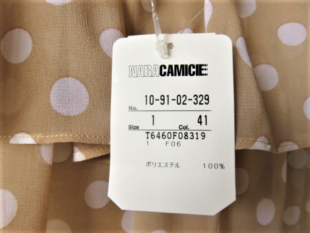 ■新品 未使用 上質美品【NARACAMICIE】ナラカミーチェ 高級 フリル シフォン ブラウス【Ⅰ】9号 M  送料185円 ベージュ w843