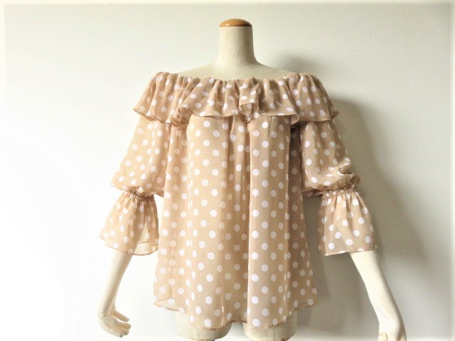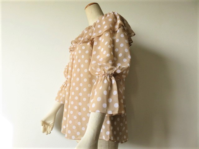 【NARACAMICIE】ナラカミーチェの高級フリルシフォンブラウス、お色はベージュです。