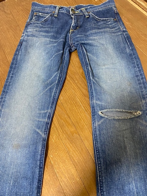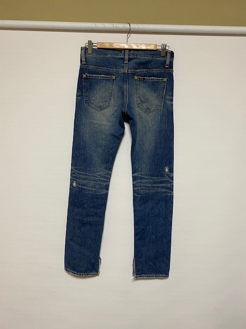 | サイズ表記 25。 ウエスト実寸 75cm。 股下 75cm。 前股上 22cm。 ヒップ幅 43cm。 腿付け根部分の腿幅約24cm。 裾幅 16cm。 以上、平置きでの計測です。 フロントジッパー。 綿 100%。 インディゴユーズド&ダメージ&汚れ加工デニム。 着用回数少なく、程度状態は画像の通り良好です。 裾補正直しは致しておりません。 発送詳細 ヤフネコ宅急便コンパクトでの発送になります。御落札額の御入金確認後の発送になります。 全国送料無料です。 北海道、沖縄、離島もヤフネコ宅急便コンパクトでの送料無料発送になります。 | |