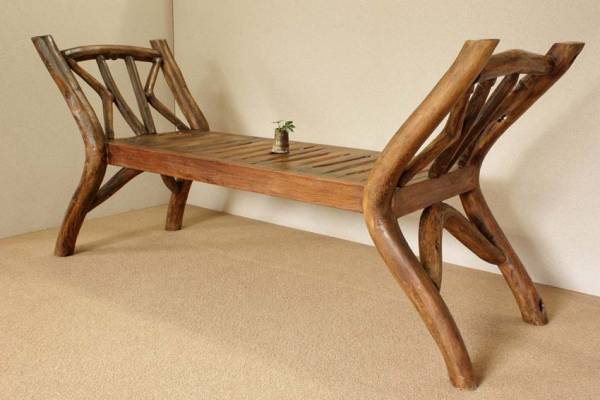 『癒し』アンティーク*チーク古木自然杢*デザイン家具*デザイナーズチェア*シンプルな暮らし*家具好き*マイホーム*椅子*☆頸木横長ベンチ