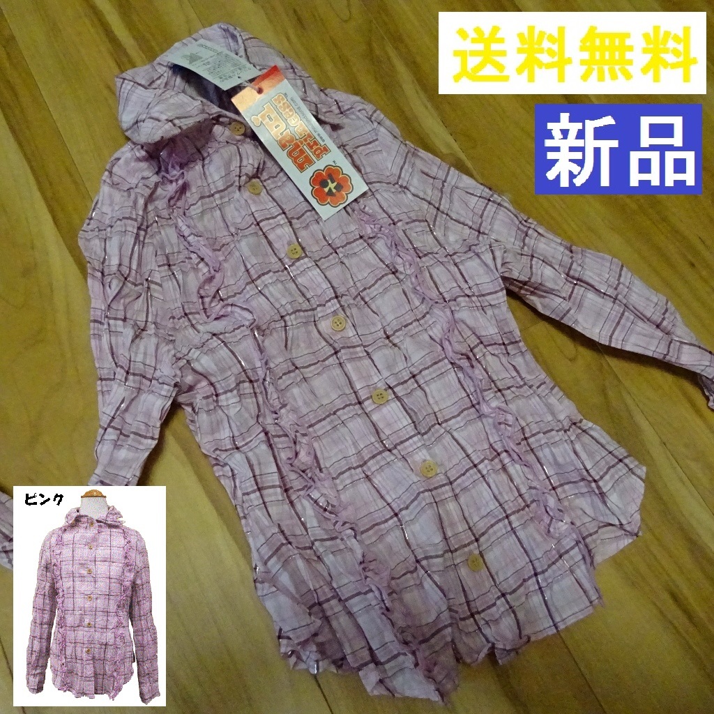 ■新品 クリンクルシャツ ピンクチェック 長袖