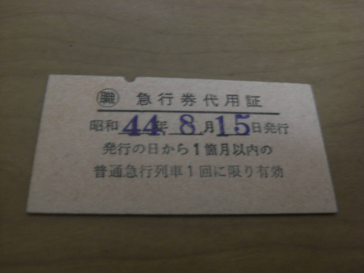 職 急行券代用証 昭和44年8月15日発行 岡山鉄道管理局長 国鉄