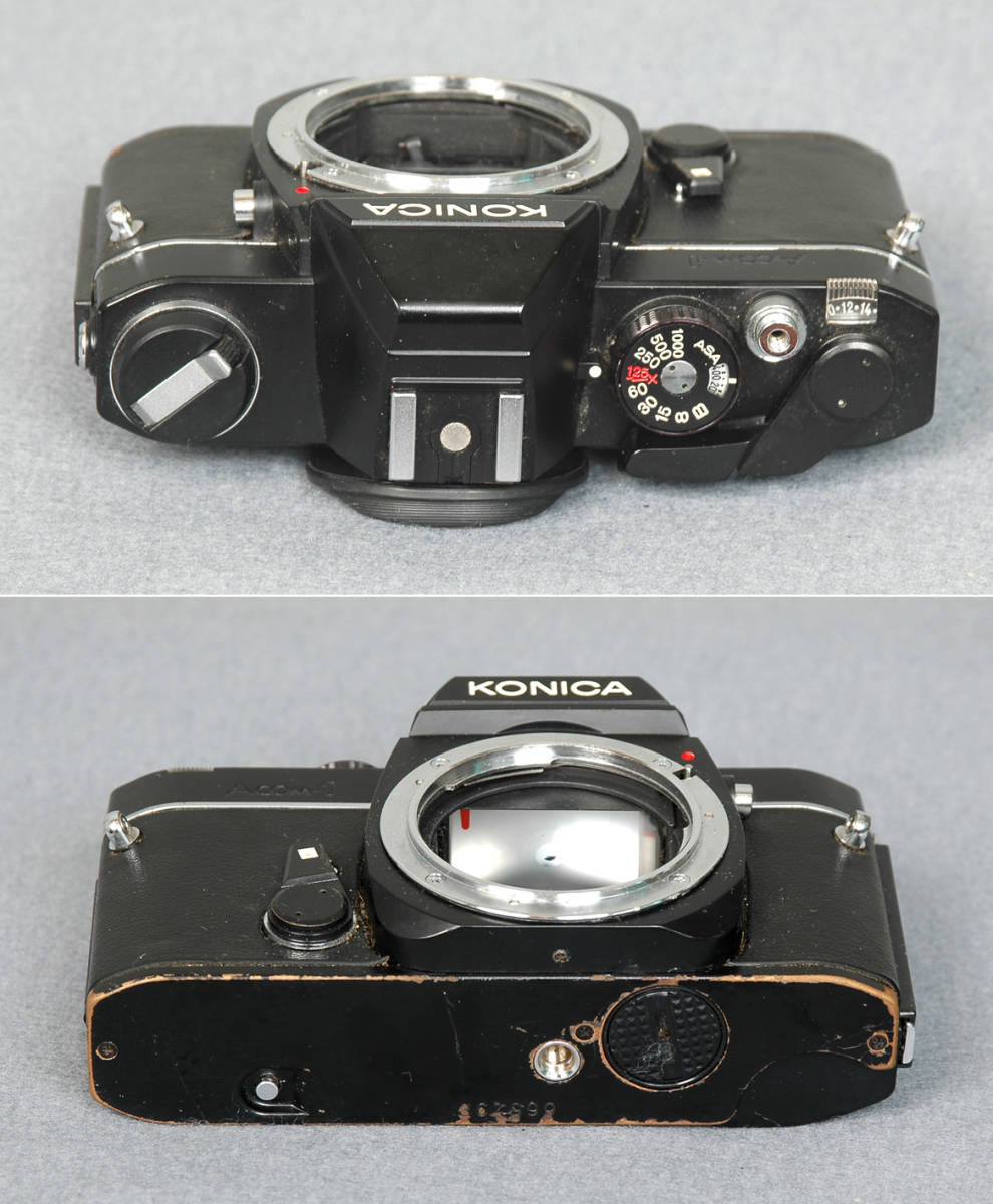 | * 商品説明 * 1976年に「愛情コニカ」の愛称で発売されたコニカ「Acom-1(エイコムワン)」のボディです。レザー貼りと洒落たデザインです。ボディ的にはきれいですが、写真のように底板の周りがかなり黒メッキが擦れ落ちています。作動はシャッター速、シンクロ、タイマー等は正常です。ファインダー、ミラーもきれいです。ただ、露出計は作動しないようです。ボディキャップは純正ではなく、キチンとはまっていません。お役立てください。・・・コニカ「Acom-1(エイコムワン)」に関しましてはGoogleにて検索が可能です。以下ネットよりの転記です。・・・数ある一眼レフカメラの中でも、比較的チープな存在である当カメラではあるが、宣伝には 山城新伍・花園ひろみ夫妻 西川きよし・ヘレン夫妻 を起用して当時は話題になったらしい。・・・電源MR9×2、シャッターコパルスクェアーFC-512、B・1/8~1/1000秒、発売価格45,500円。 |