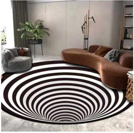 【D100cm】3Dベラティゴ-廊下用カーペット,寝室の装飾,居間,円形,ステレオ,ボルテックス,錯覚,間違ったビジョンドアマット