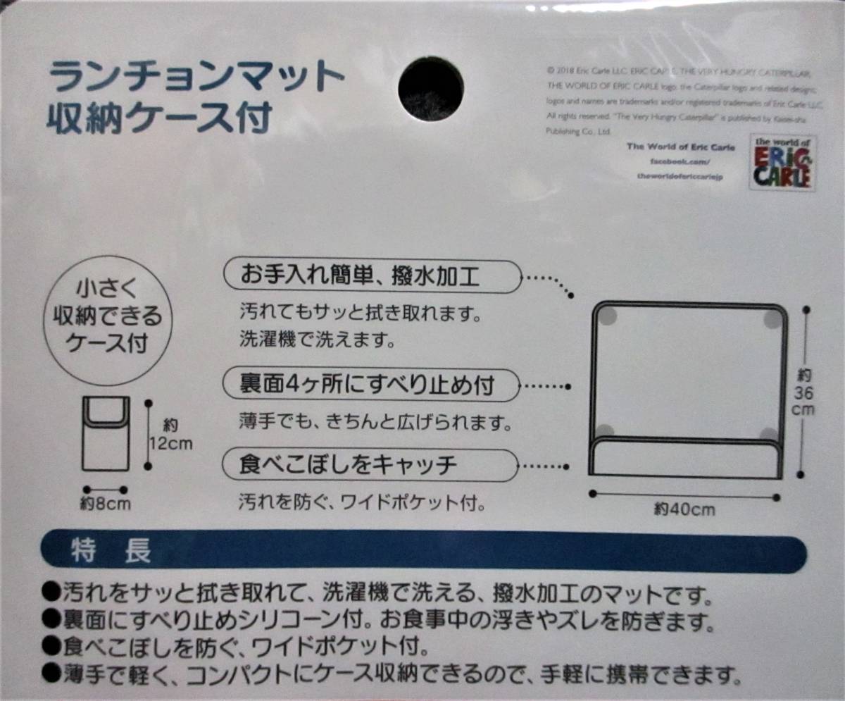 即決【 はらぺこあおむし 携帯用 ランチョンマット 】収納ケース付 撥水加工 洗濯機OK すべり止め 食べこぼしガードポケット付 食事