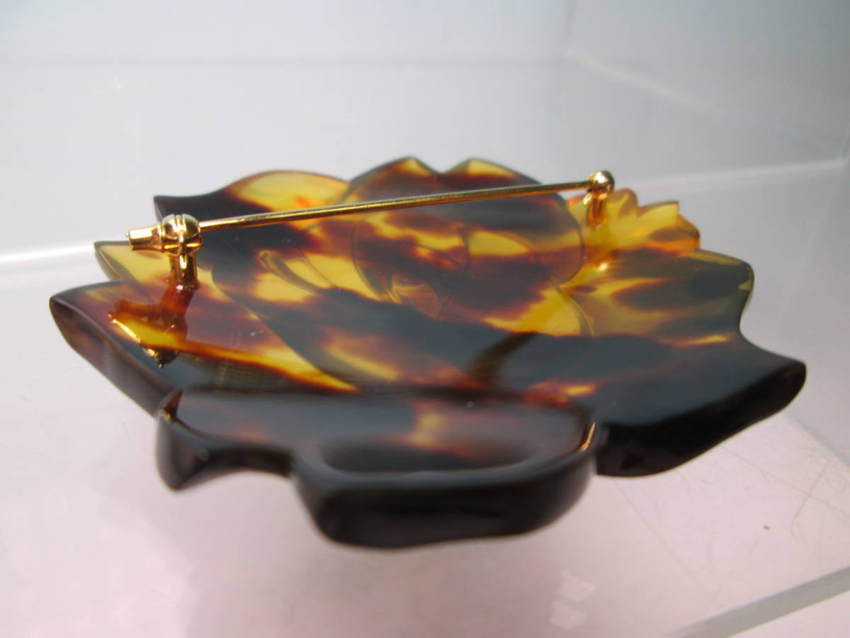 ☆本鼈甲の大振りな 5,8cm 薔薇の花のブローチ