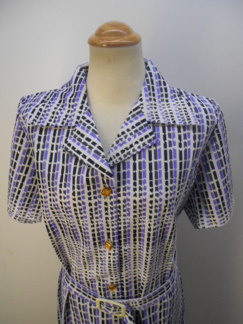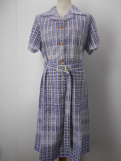 昭和レトロ ワンピース 半袖 15号 紫 夏 美ユーズド レディース JAPAN 古着 a500