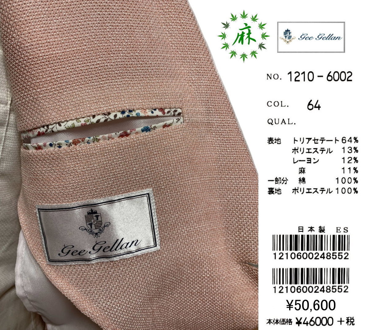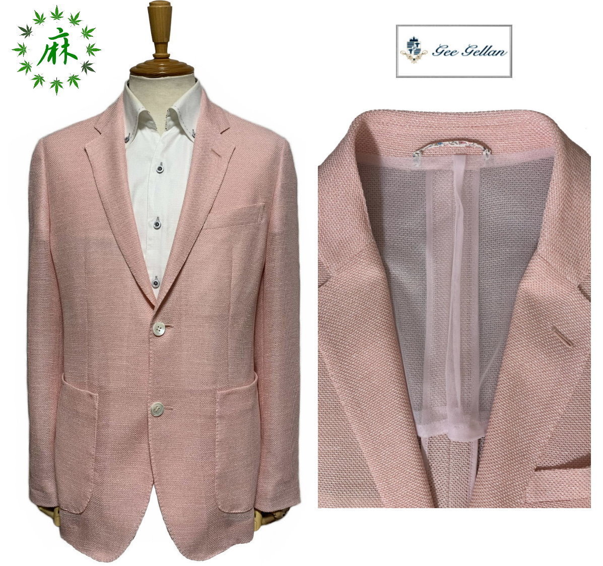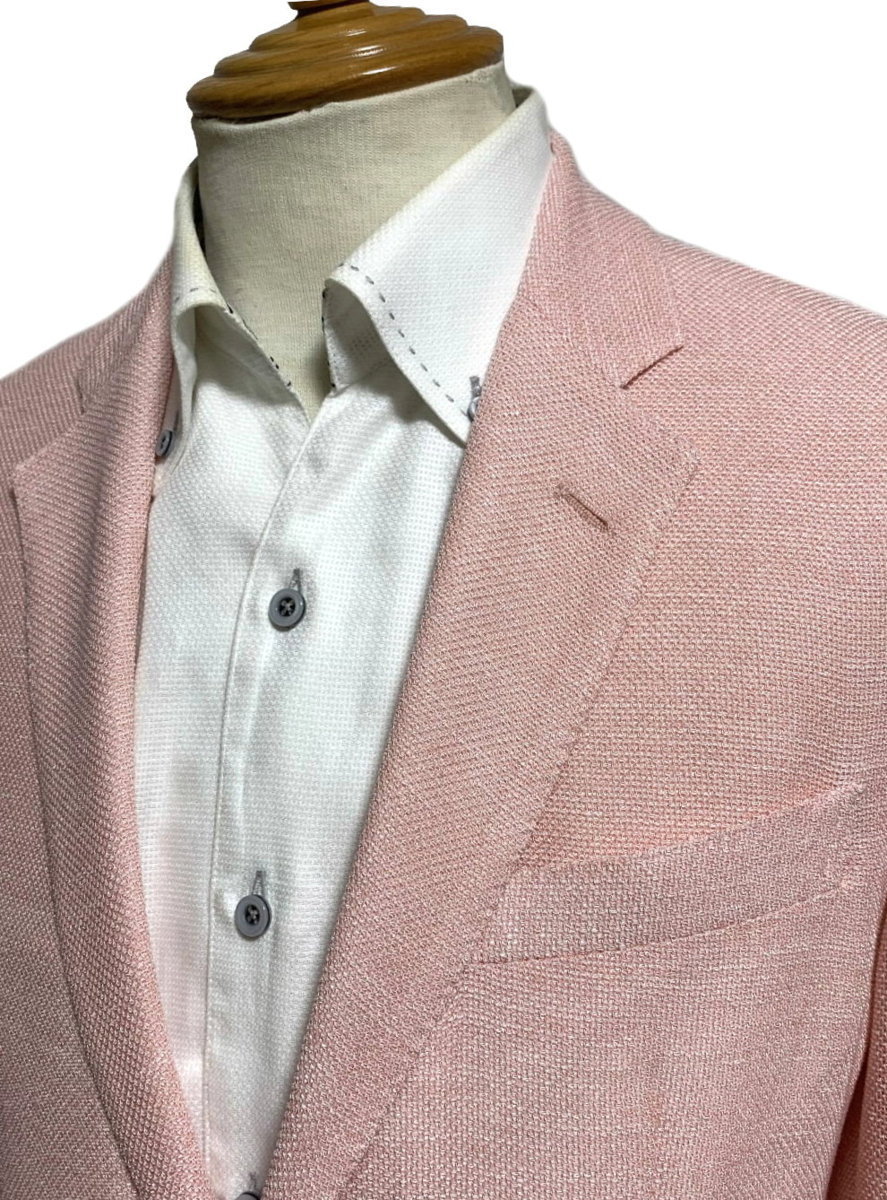 GEE GELLAN ジーゲラン GEEGELLAN 清涼 麻混 メッシュ ジャケット サーモン size46 M 夏まで快適