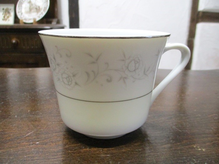 日本製 プラチナローズ バラ柄 コーヒーカップ ティーカップ イギリス 英国 里帰り品 キッチン雑貨 tableware 1558f