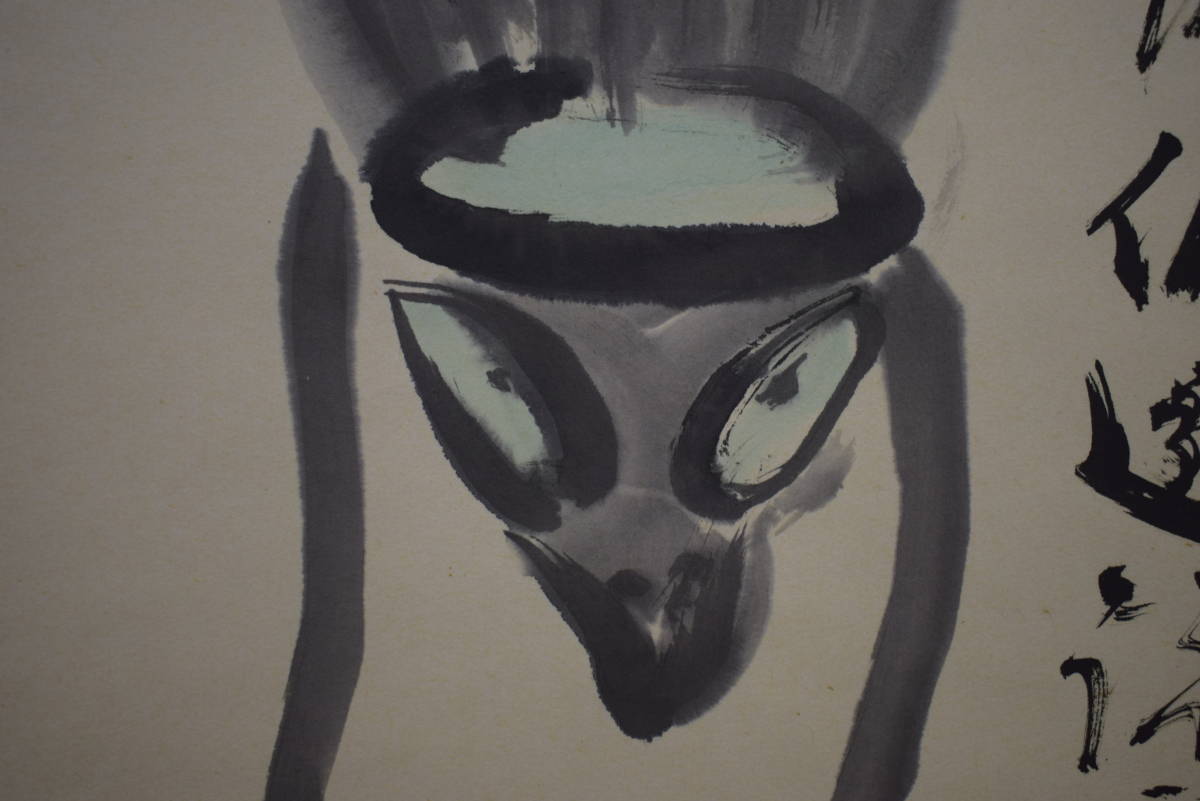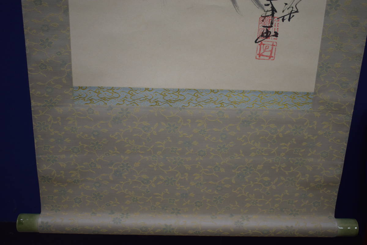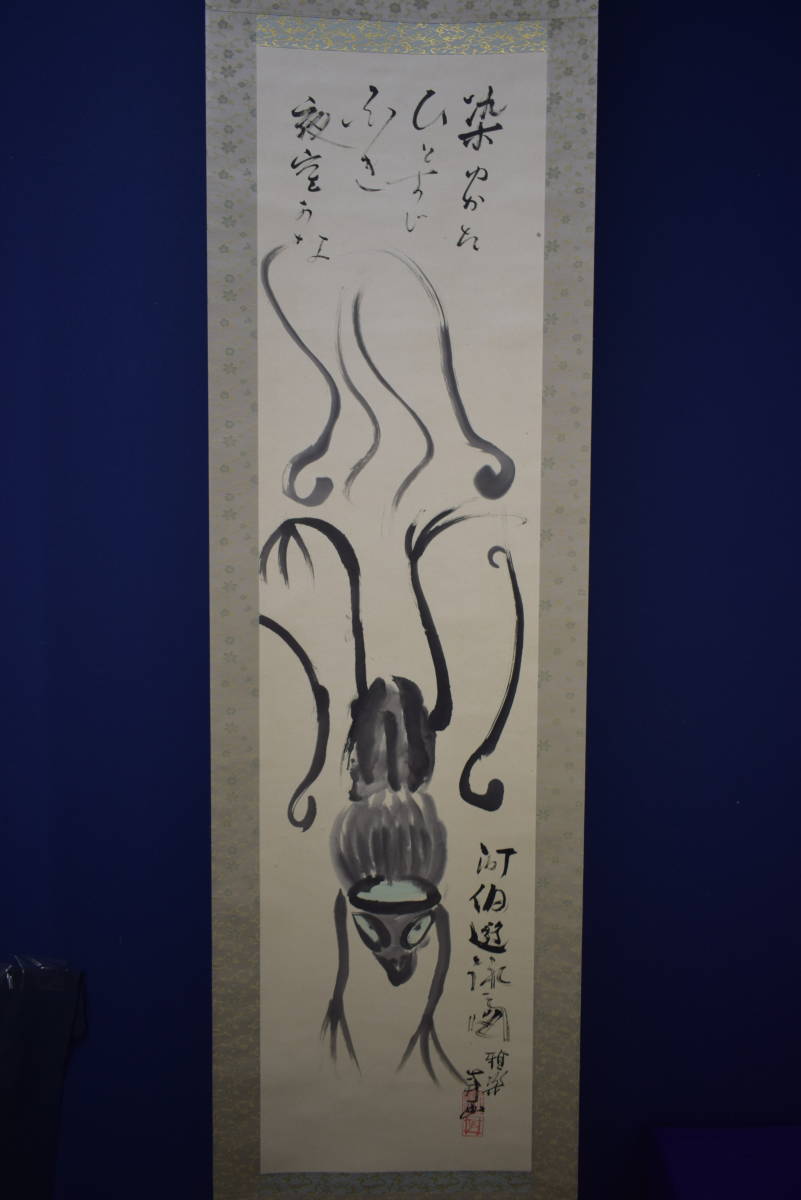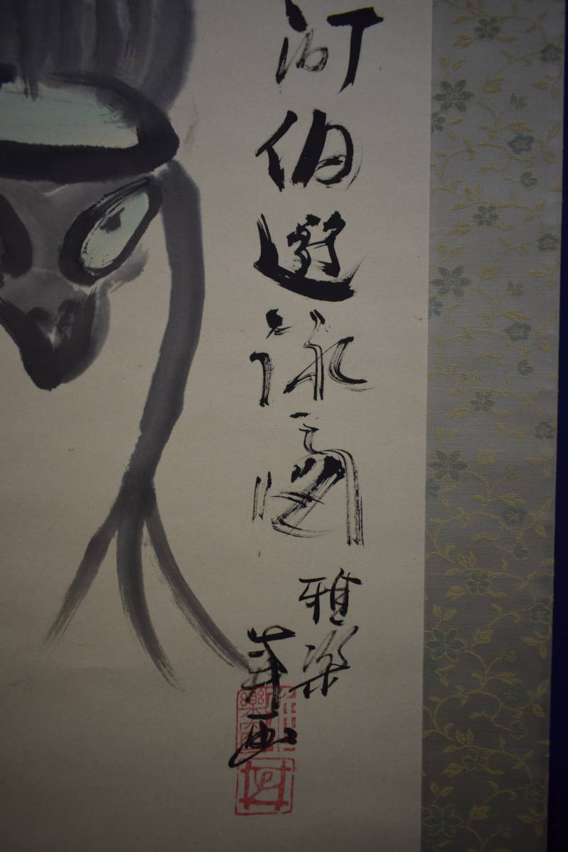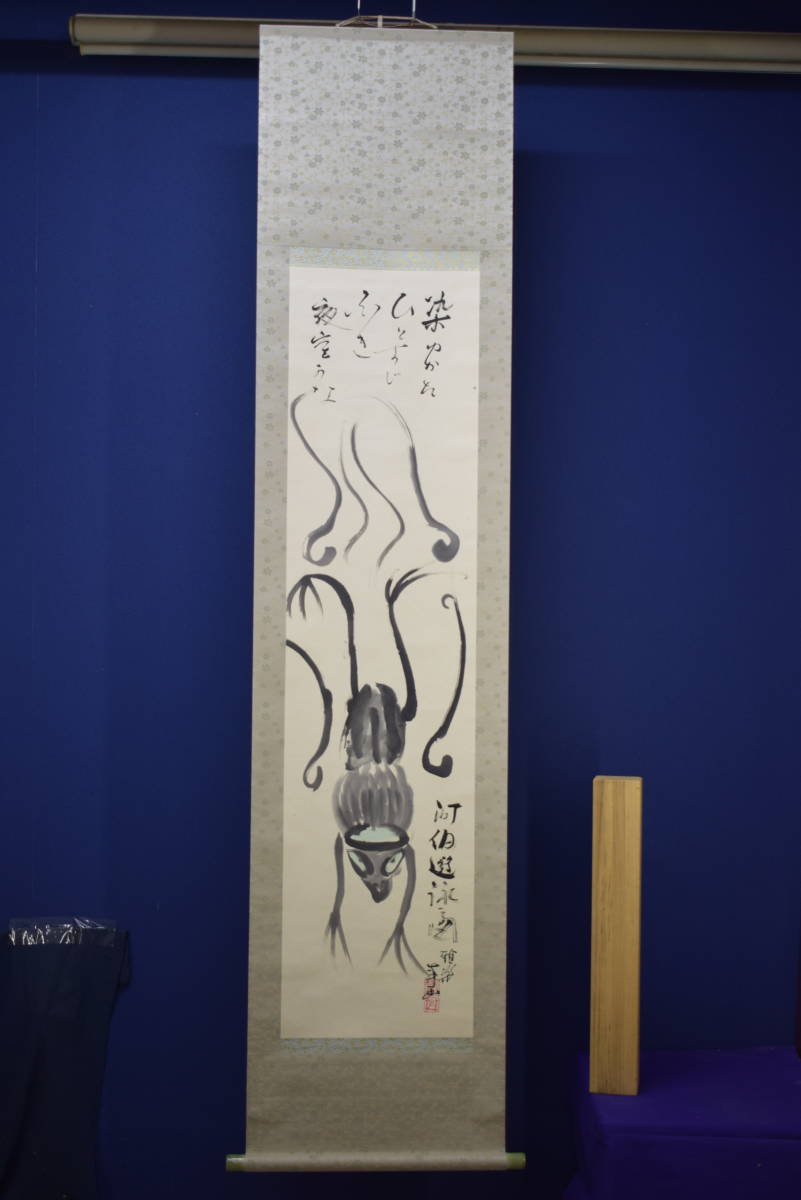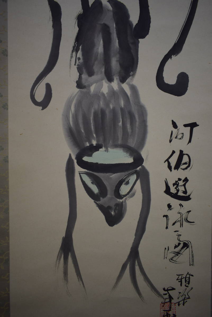 【真作】//雅楽/河伯遊泳図/河童画賛/軸先焼物/桐共箱付/布袋屋掛軸HI-968
