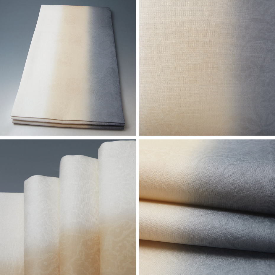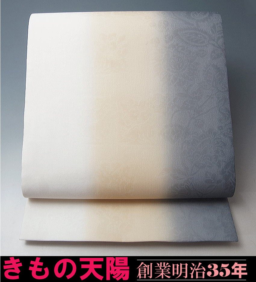 | 商品説明 | 夏のカジュアル~セミフォーマル用着物にあわせていただける袋帯です。 夏ものはリサイクル市場にもあまり良品が出回りませんので、 夏着物にピッタリな軽く冷涼感ある袋帯を、 今期もお仕立て致しましてUPさせていただきます。 卵色~藤色ぼかし染めの紗地に、植物更紗の地織が施された夏のカジュアル~セミフォーマル用袋帯です。 もじり紗 康彩 仁衛門製です。 ※新品・芯入り仕立上り品です。 柄付け:六通 |
