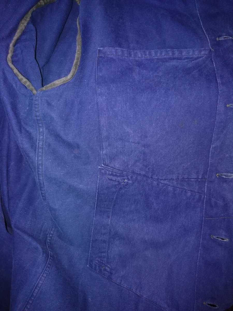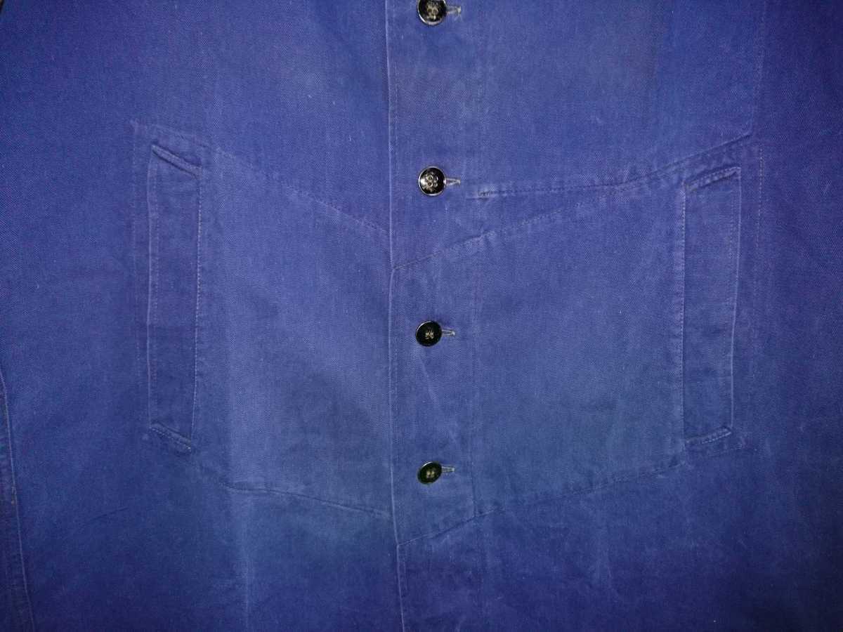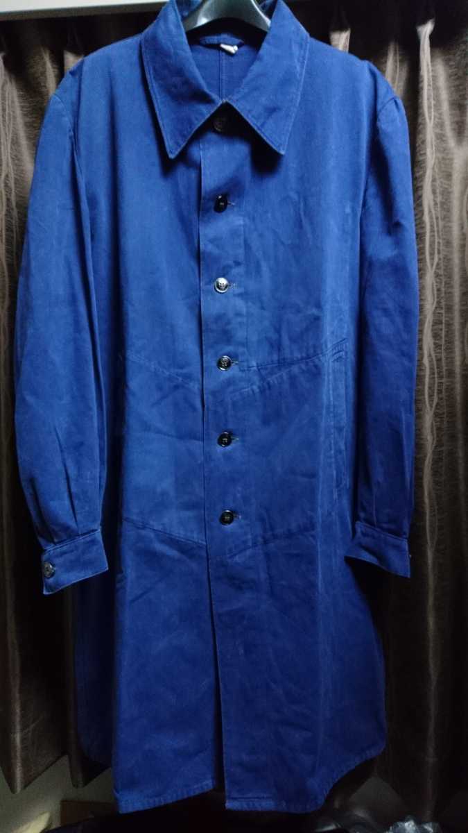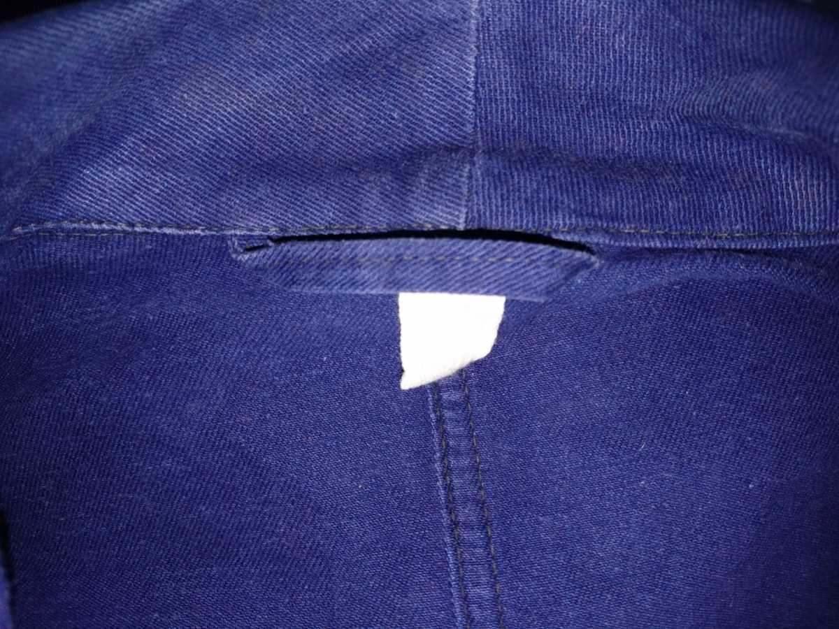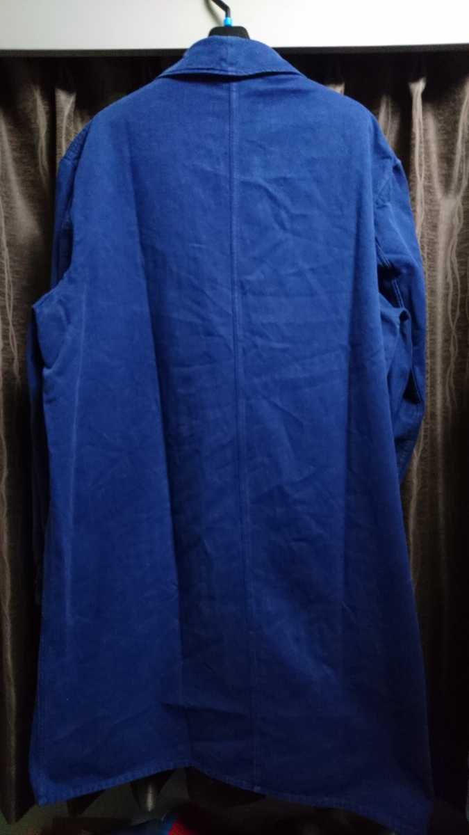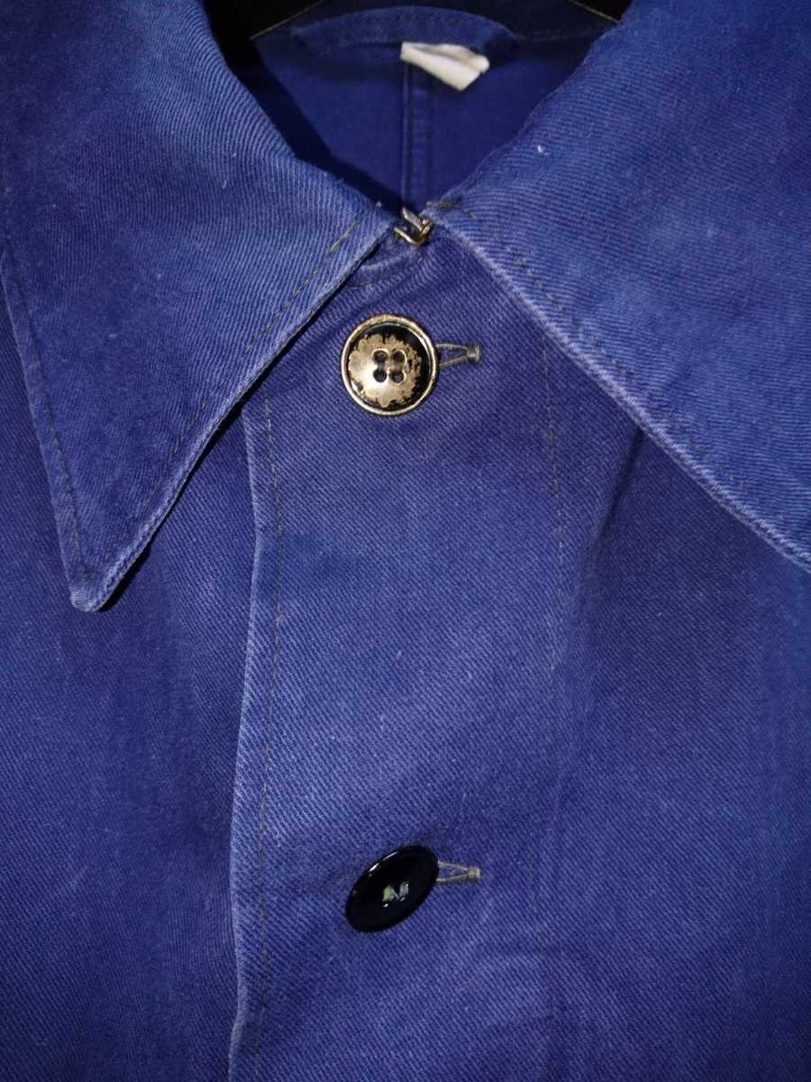 ブルーのコットンツイル地で、ボタンは袖含め全てメタルボタンです