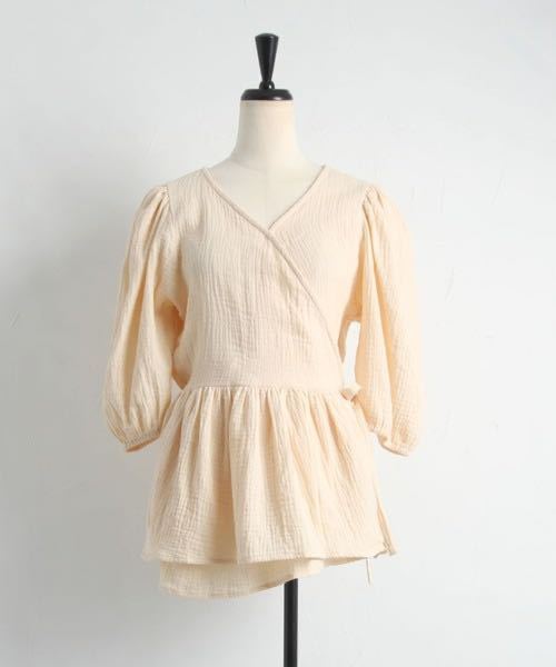 トップスは、お顔周りをスッキリ見せるカシュクールデザイン。
