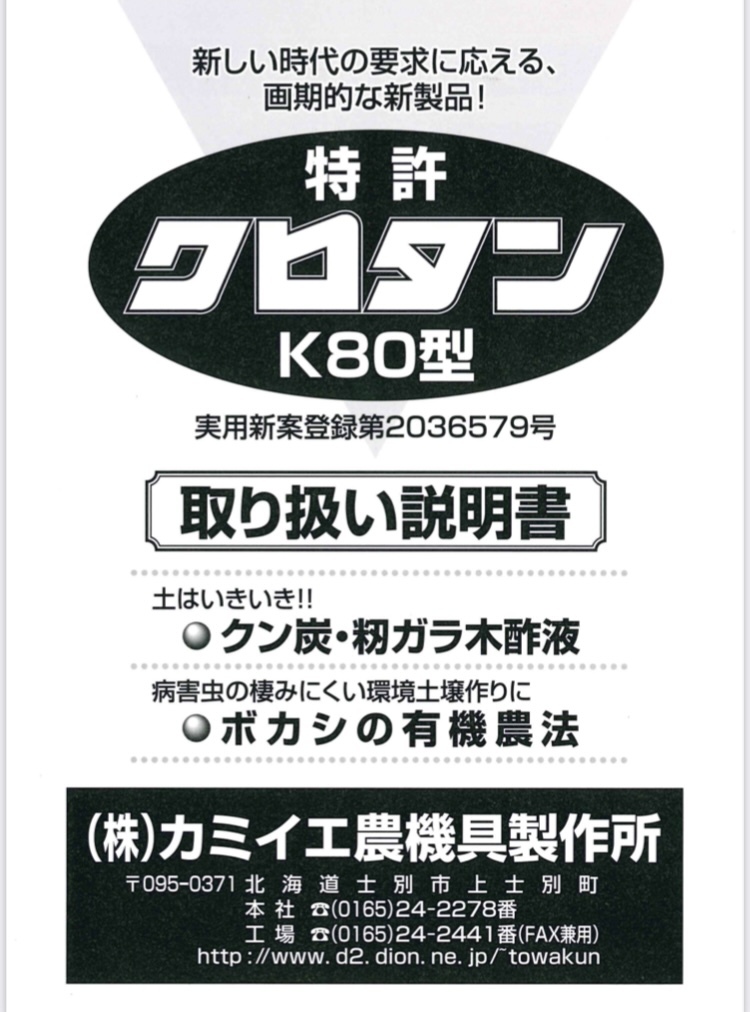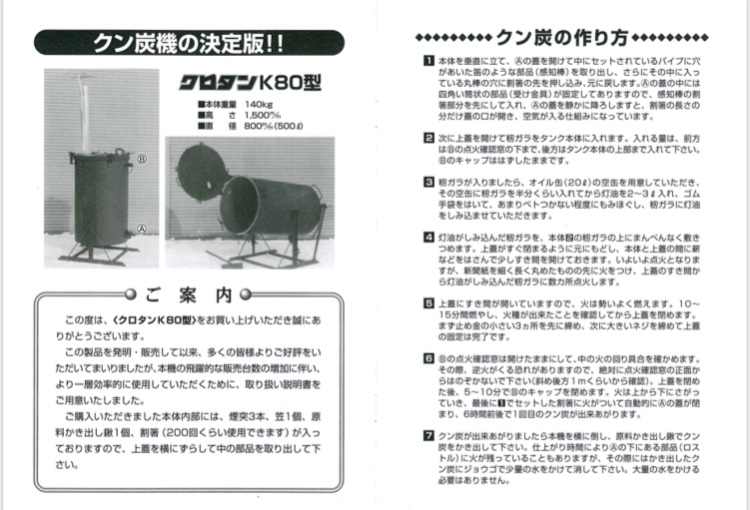 クンタン機 クン炭 籾ガラ木酢液 有機農法 クロタンK80 カミイエ農機具製作所式 (クンネン機)