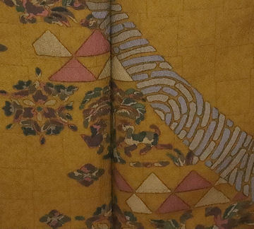 | 色・柄 | 訪問着 袷 丹後縮緬地 ふくれ織地 金茶ぼかしふくれ織格子縞地模様地 地割れ模様・渦・鱗文・草花・鳳凰・馬・熨斗文 (写真では上手く色が出ない場合があります。ご了承下さい) |